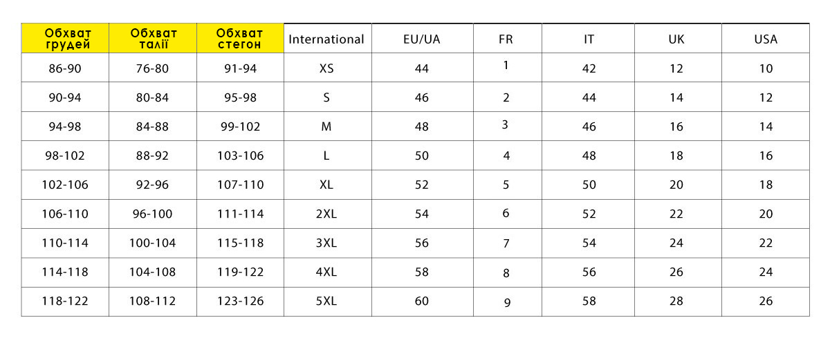 1 Обхват під грудьми (в см):