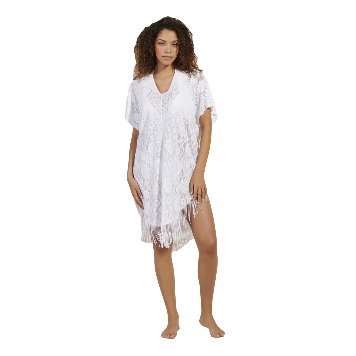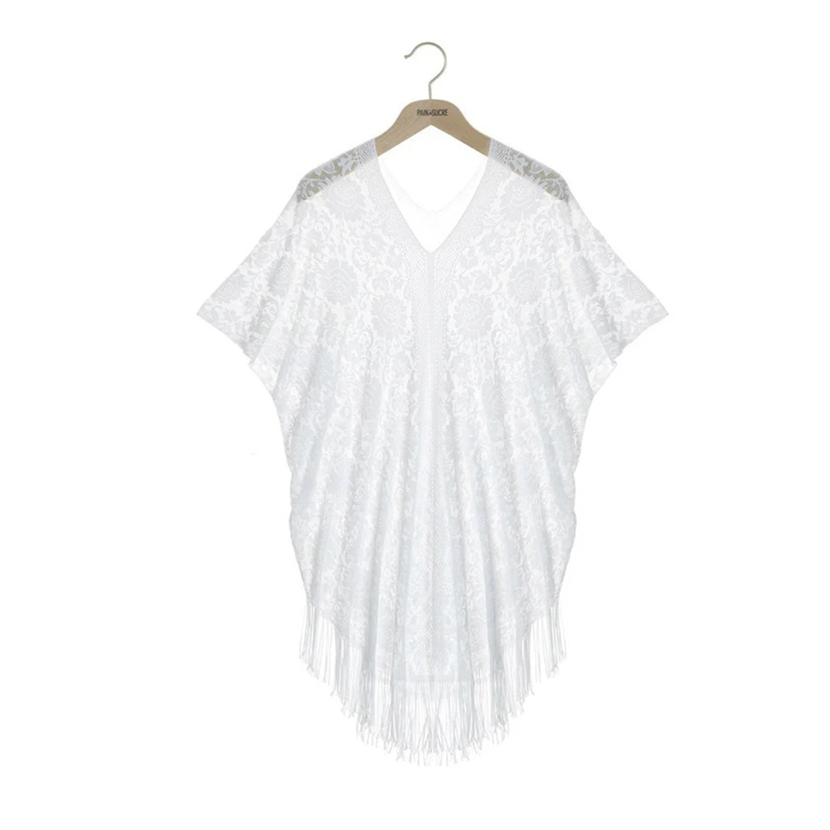 Розкішна та жіночна пончо-туніка Jesse. Виконана з "невагомого" гіпюру та декорована бахромою, вона змусить Вас відчути себе Богинею.