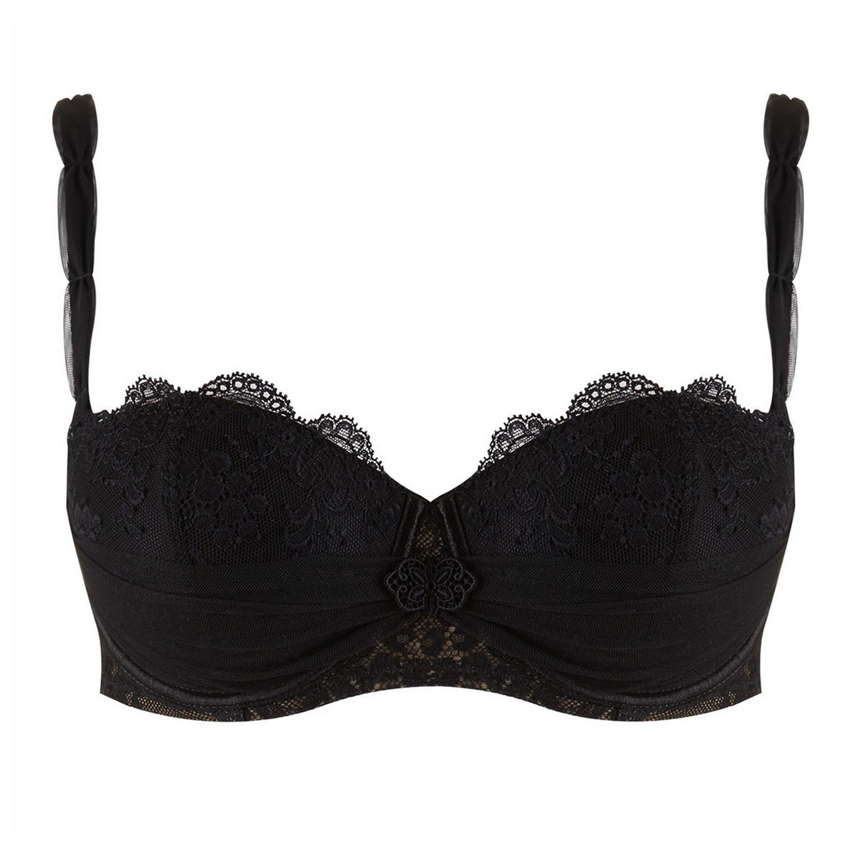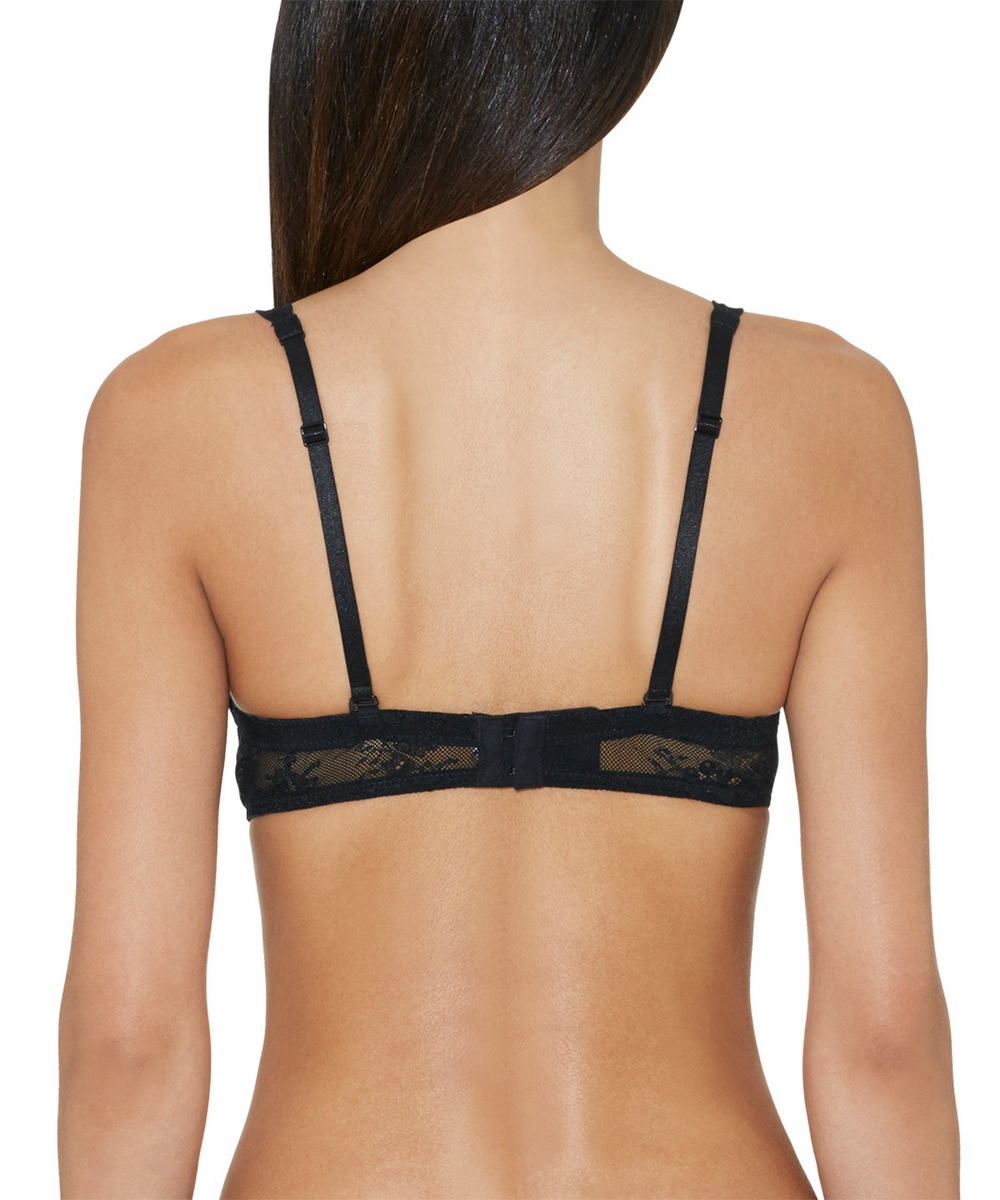 Бюстгальтер - бандо з ущільненою формою чашок, які вкриті мереживом із квітковим орнаментом. У нижній частині чашки декоровані тюлем. На центральній панелі розмістилася квітка. Регульовані бретелі, що відстібаються. Задні панелі виконані з мережива та оснащені силіконовою доріжкою для забезпечення необхідної підтримки.