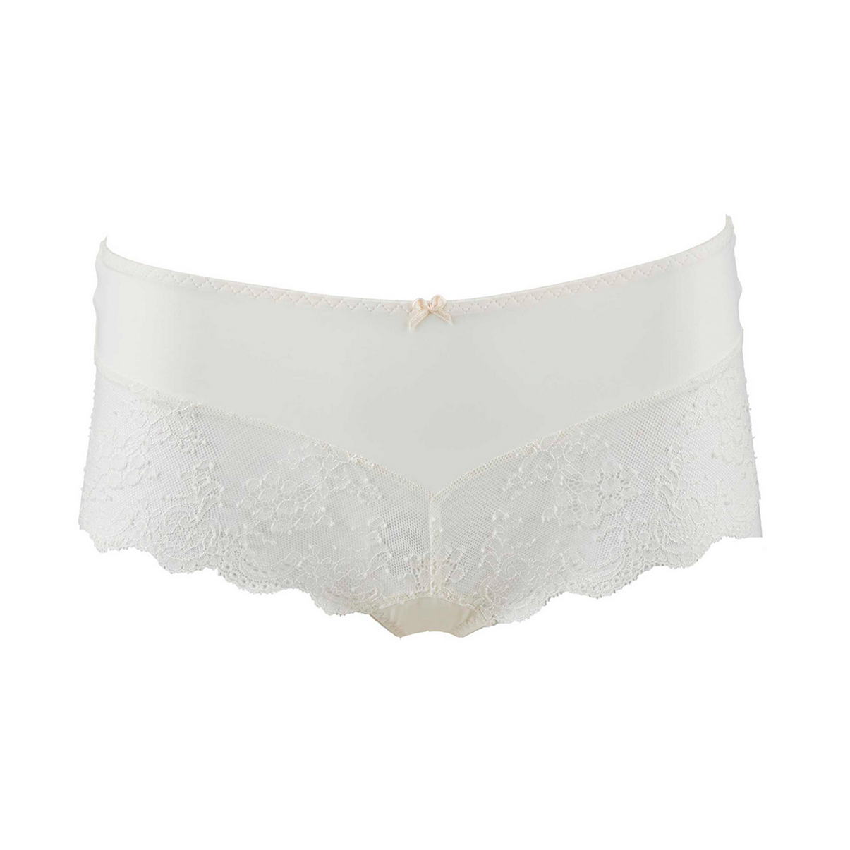Труси - боксери: непрозора передня панель. По лінії стегон модель прикрашена мереживом "Ліверс (Leavers) Кале". Драпірований тюль і декоративний елемент з гіпюру відкривають кокетливий виріз на задній панелі.