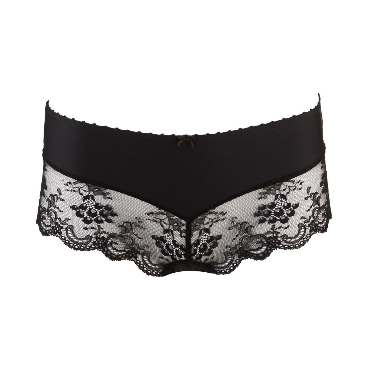 Труси - боксери: непрозора передня панель. По лінії стегон модель прикрашена мереживом "Ліверс (Leavers) Кале". Драпірований тюль і декоративний елемент з гіпюру відкривають кокетливий виріз на задній панелі.