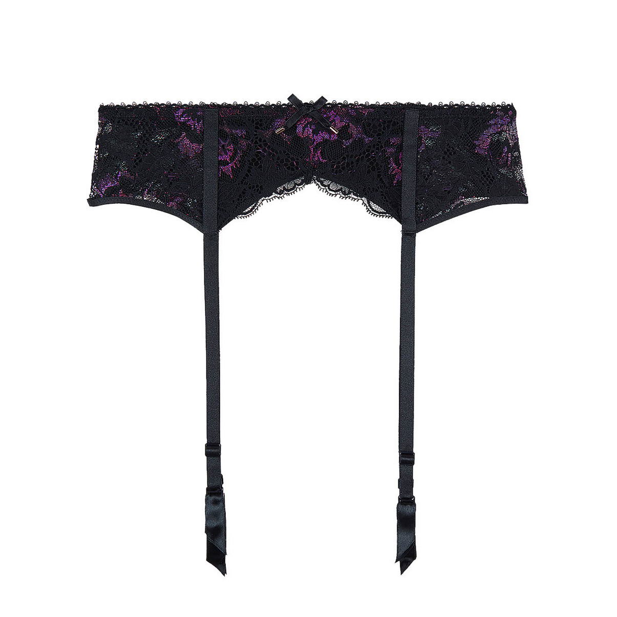 Пояс для панчох з регульованими, незнімними підтяжками. Передня панель виготовлена з триколірного мережива, задня - з непрозорої мікрофібри. Застібка на задній панелі.