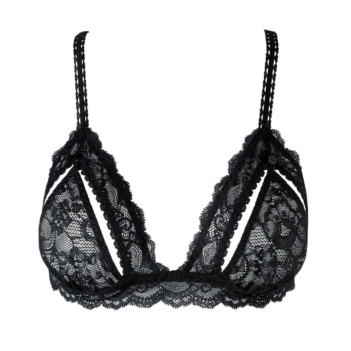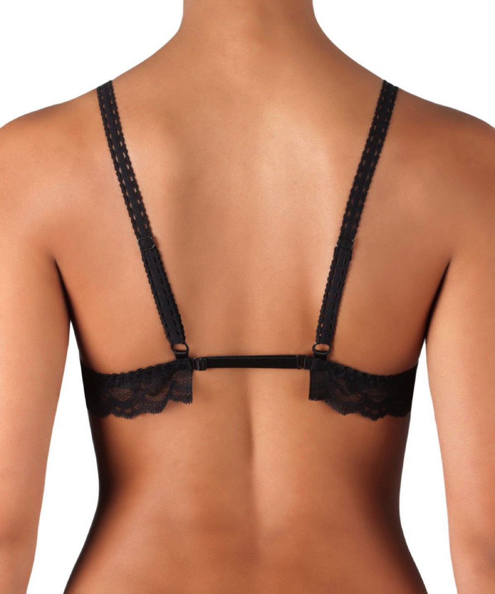Бюстгальтер – трикутник, повністю виконаний з мережива. Кожну чашку можна розстебнути, оголивши при цьому груди. Це відбувається завдяки маленькому гудзику, який розташований біля основи бретелі. Усі моделі представлені окремо, в індивідуальній подарунковій коробочці із зображенням виробу у круглому вікні.