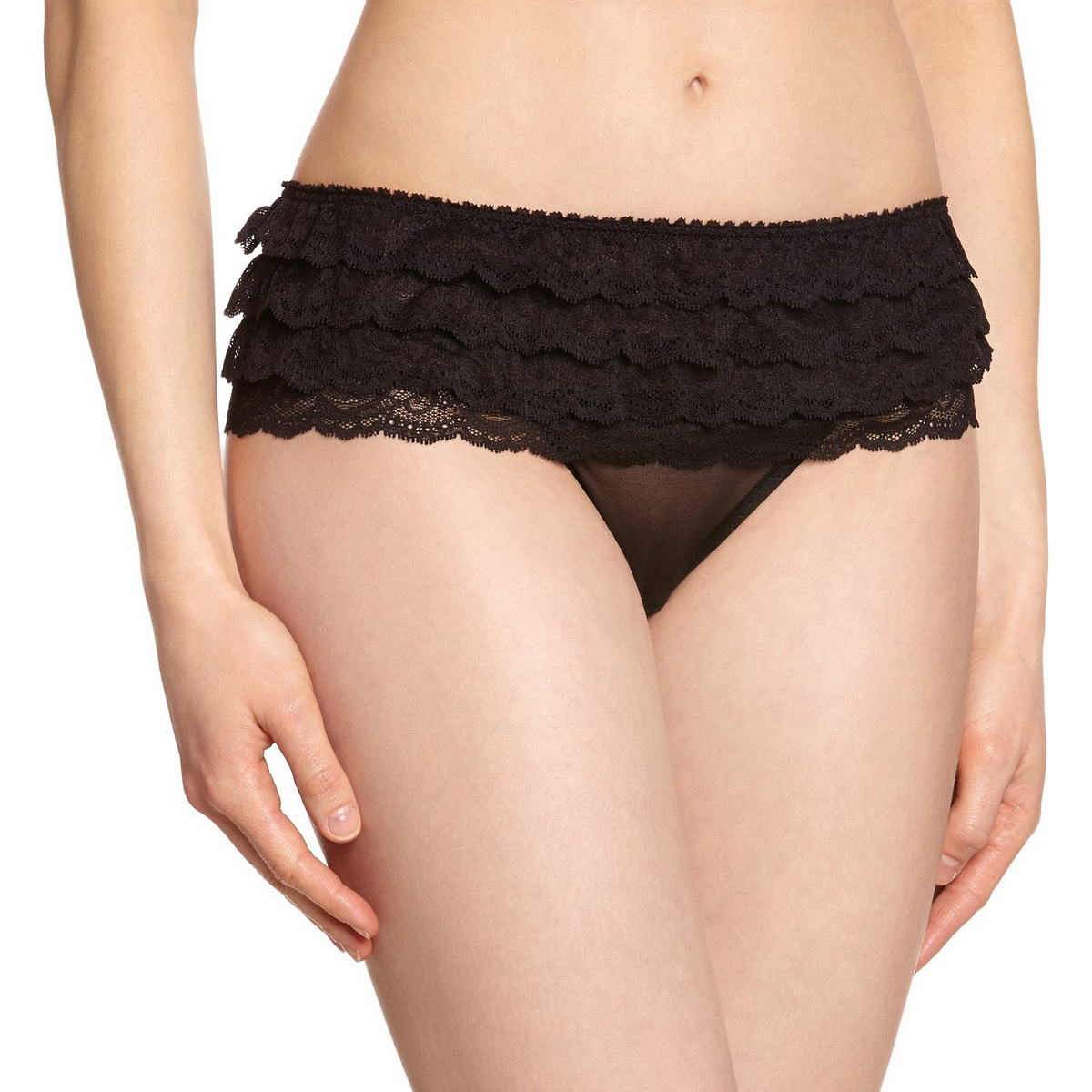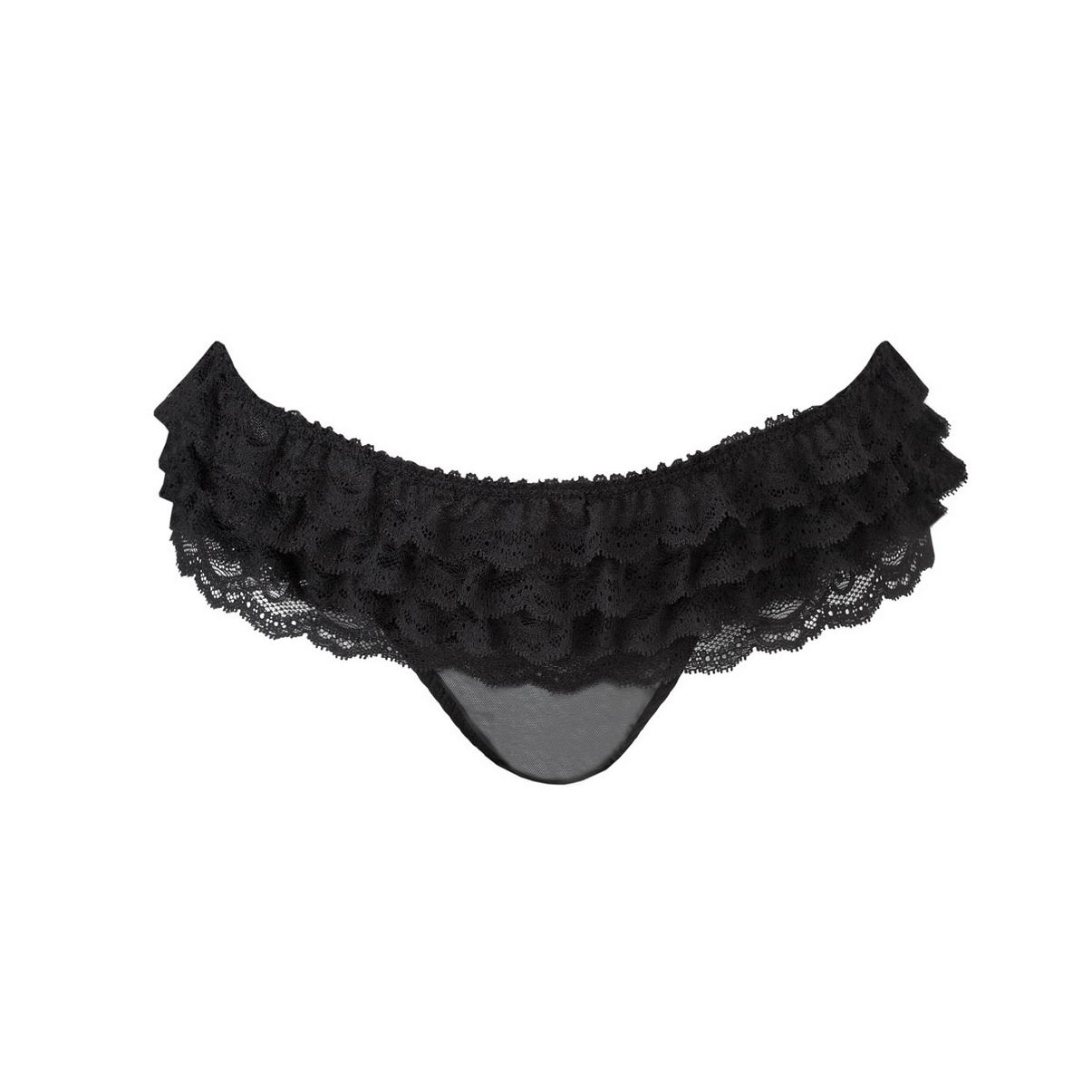 Сексуальна модель стрінгів, передня панель дубльована бавовною. Чотири шари мережива - для створення ефекту "фру-фру". Ззаду – на зав'язках. Усі моделі представлені окремо, в індивідуальній подарунковій коробочці із зображенням виробу у круглому вікні.
