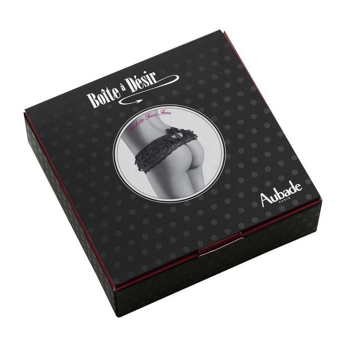 Ця колекція пропонує ультра-сексуальні моделі як аксесуари для любовних ігор. Всі моделі колекції повністю виконані з мережива та доповнені функціональними ґудзиками з логотипом Aubade. Елементи колекції, що поєднуються і трансформуються за Вашим бажанням, запрошують Вас зіграти спокусницю, лише дайте волю фантазії! Поєднання тонкої стрічки та мереживного жаккардового полотна з тасьмою в зубчики, і навіть зубчики виконані у формі сердечок! Розмір регулюється за допомогою зав'язок з мереживної тасьми. Всі моделі представлені окремо, в індивідуальній коробочці.