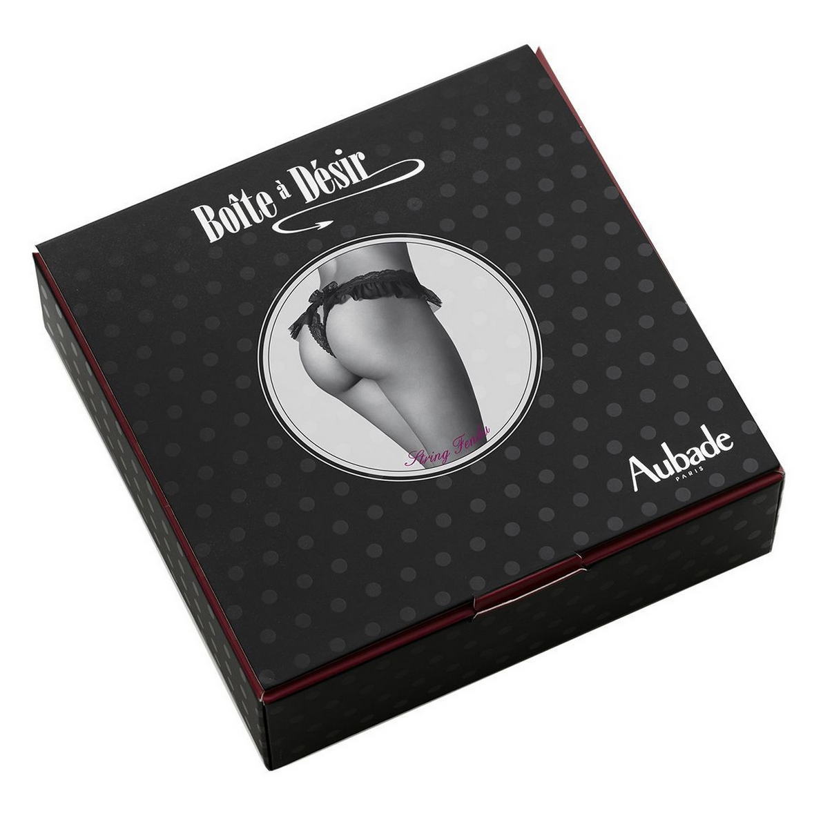 Ця колекція пропонує ультра-сексуальні моделі як аксесуари для любовних ігор. Всі моделі колекції повністю виконані з мережива та доповнені функціональними ґудзиками з логотипом Aubade. Елементи колекції, що поєднуються і трансформуються за Вашим бажанням, запрошують Вас зіграти спокусницю, лише дайте волю фантазії! Поєднання тонкої стрічки та мереживного жаккардового полотна з тасьмою в зубчики, і навіть зубчики виконані у формі сердечок! Розмір регулюється за допомогою зав'язок з мереживної тасьми. Всі моделі представлені окремо, в індивідуальній коробочці.