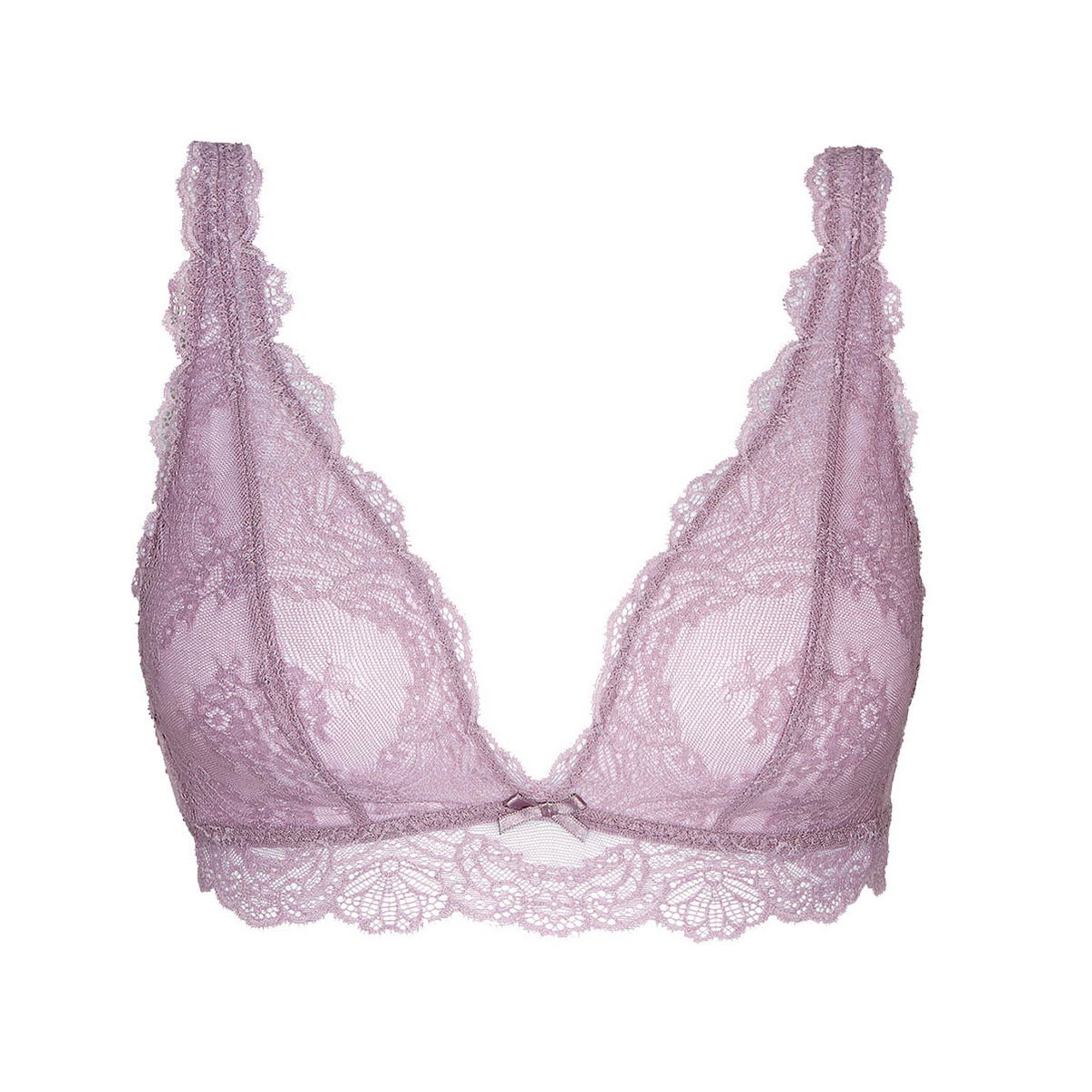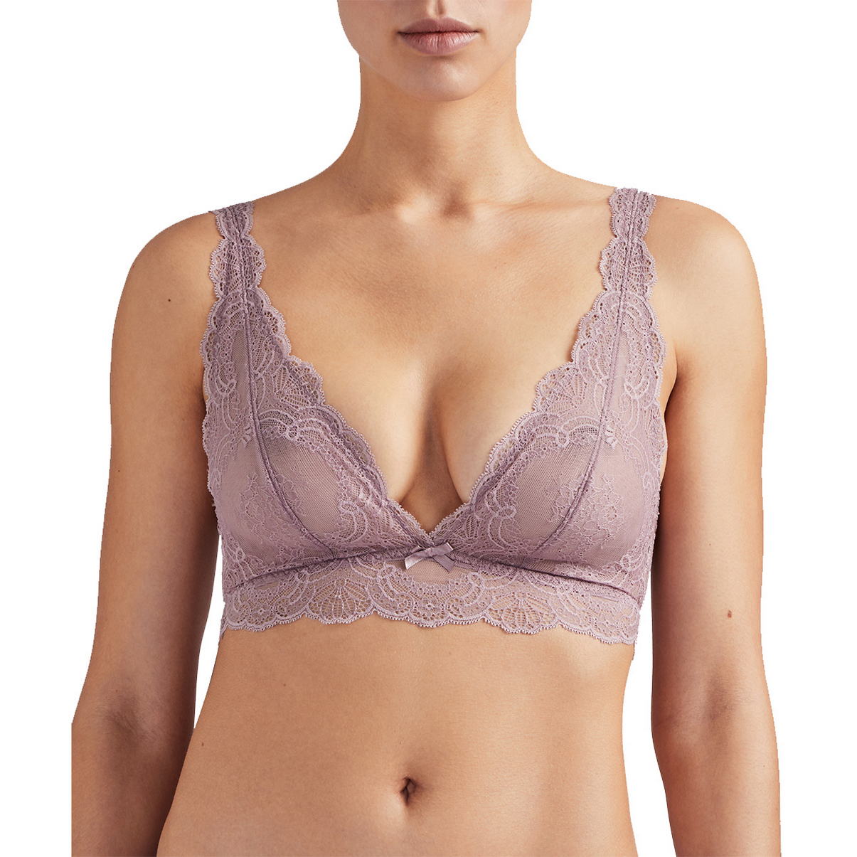 Бюстгальтер-бралет з м'якою трикутною формою чашок без кісточок. Чашки виконані з тюлю бежевого кольору, покриті чорним мереживом з квітковим орнаментом для створення ефекту малюнка на тілі. Без кісточок. На центральній панелі розмістився делікатний бантик, ділянка декольте та основа бюстгальтера декоровані мереживною тасьмою. Бретелі не регулюються, виконані у формі Ейфелевої вежі. Спинка – на застібці з гачків.