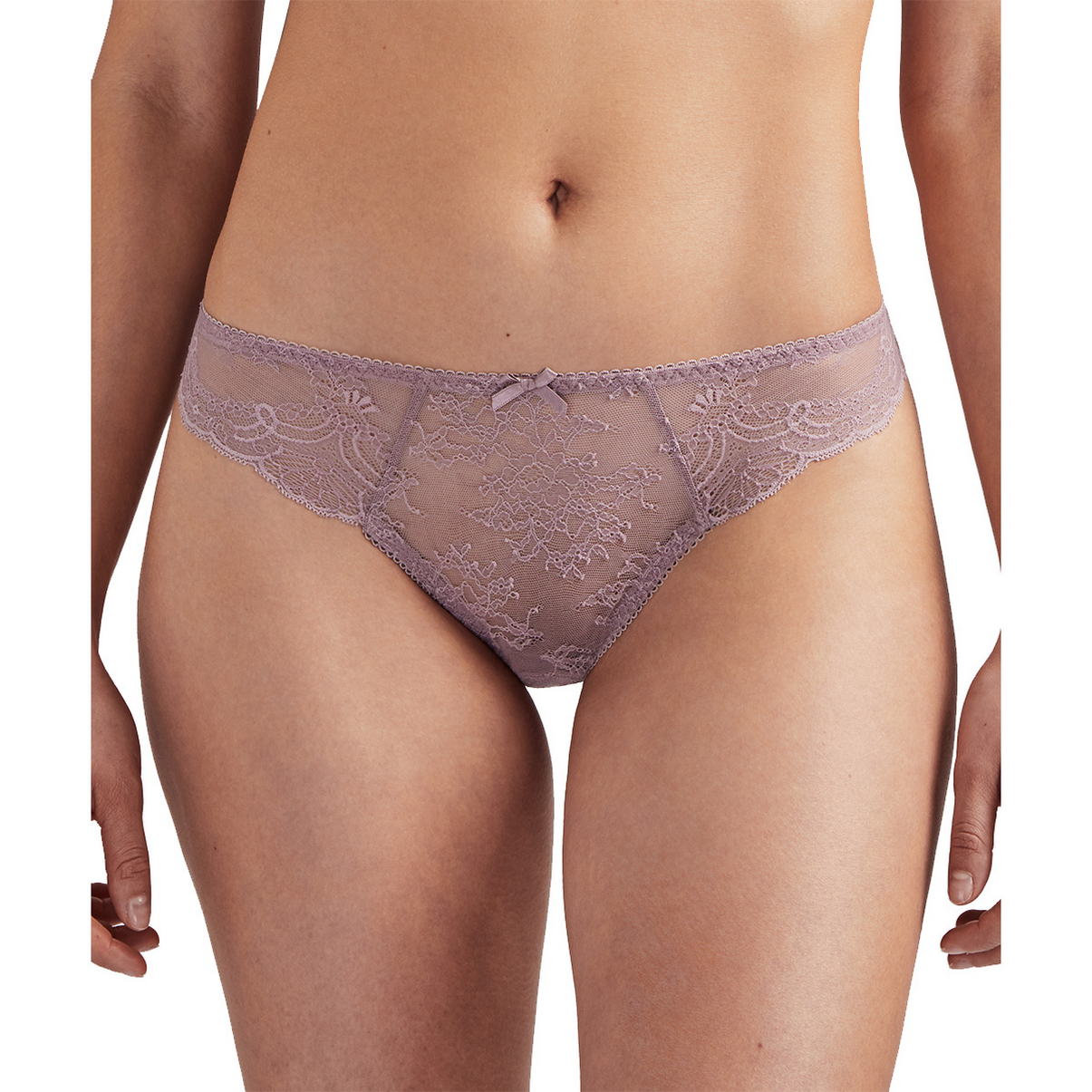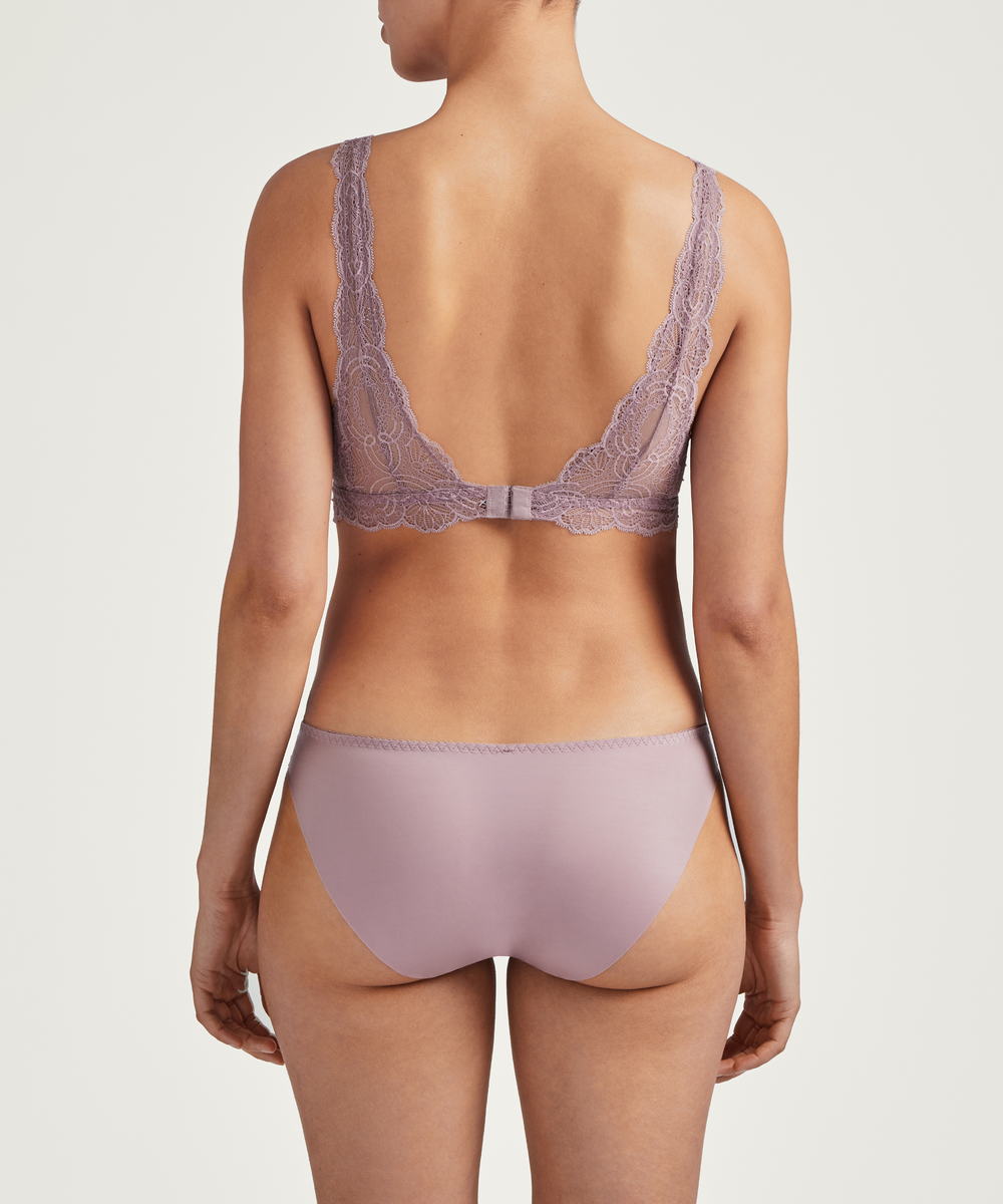 Труси-класичні із середньо-заниженою посадкою. Передня панель виготовлена з мережива з квітковим орнаментом, задня - з непрозорої мікрофібри з необробленими краями.