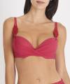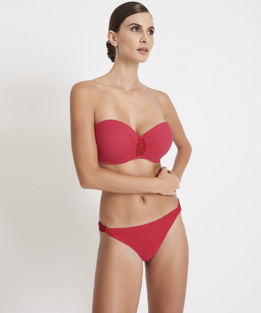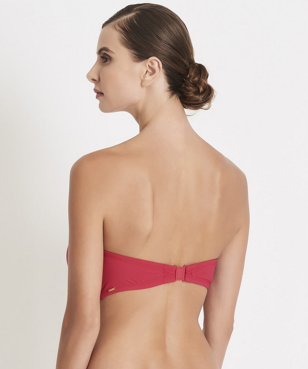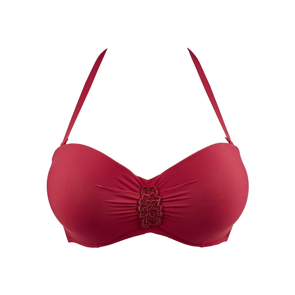 Бюстгальтер-бандо з ущільненою мульованою чашкою на кісточках. На центральній панелі розмістилася декоративна деталь із стразами "Swarovski". Бретелі, що відстібаються, для ідеальної засмаги.