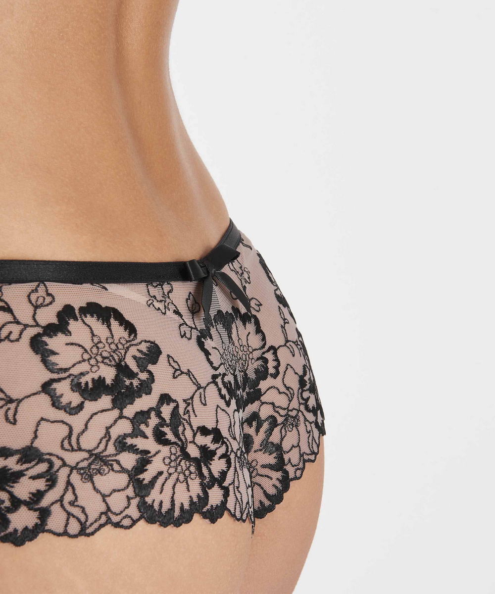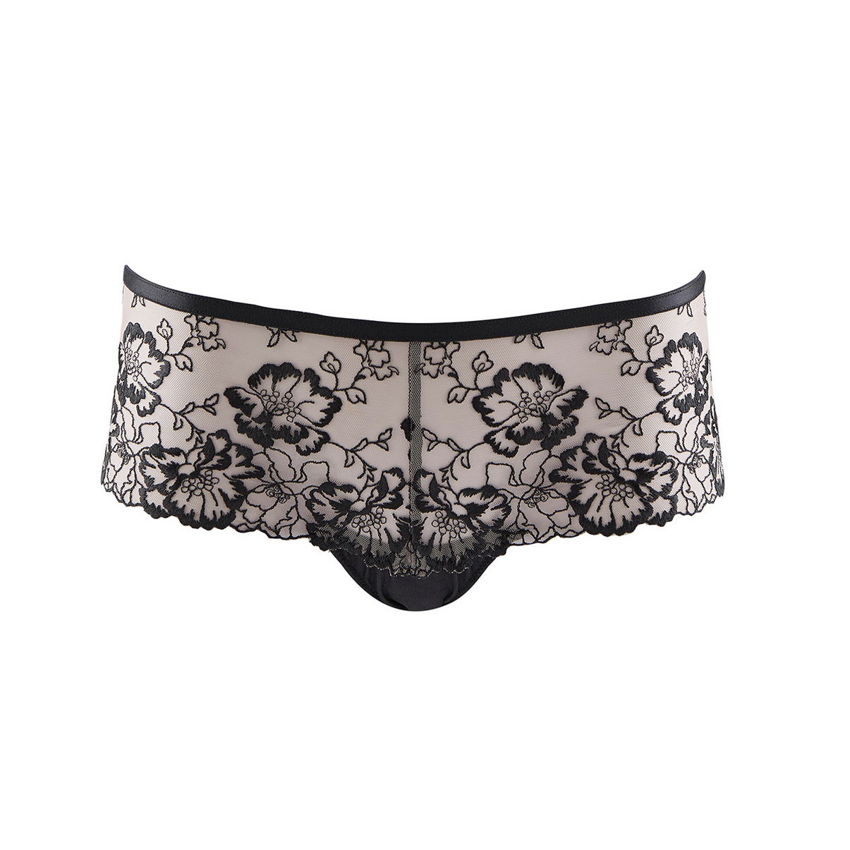 Труси-боксери із середньо-заниженою посадкою повністю виготовлені з розшитого тюлю.