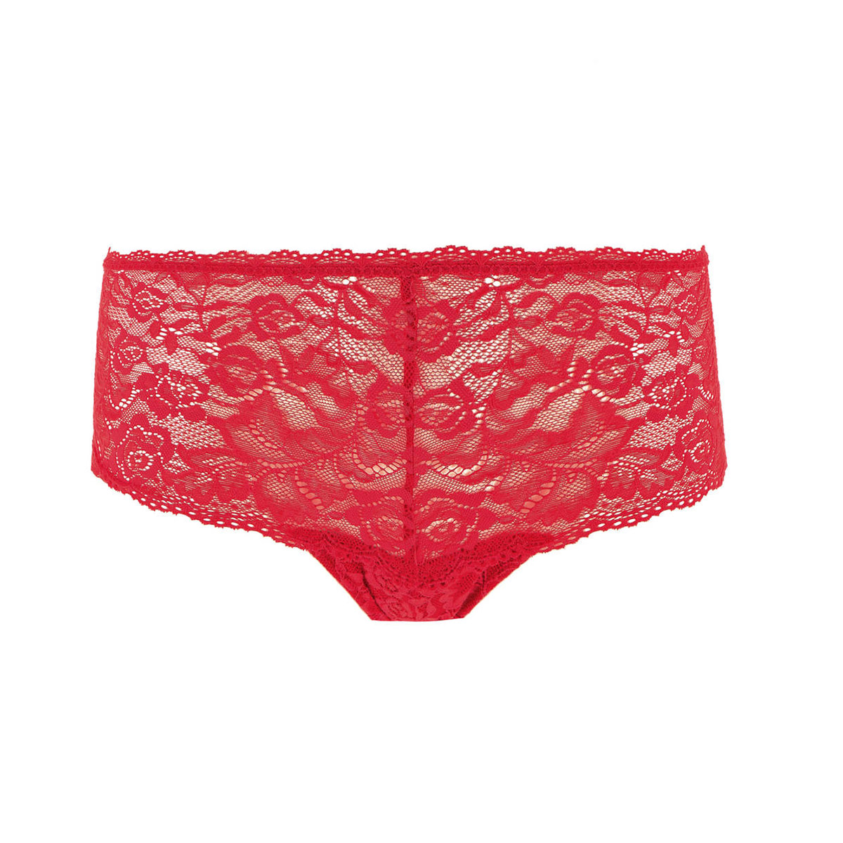 Труси-боксери, із середньо-заниженою посадкою, повністю виготовлені з "плоского" мережива з квітковим мотивом. На задній панелі розмістилася декоративна деталь із кристалом від "Swarovski".