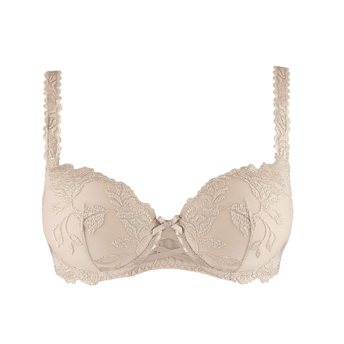 Нова базова лінія SoftEssense від Aubade поєднує в собі спокусливість, комфорт та екологічність. Розкішна «оксамитова» вишивка з квітковим візерунком надає нотку французького шарму в стилі барокко. Виконано зі 100% перероблених матеріалів.