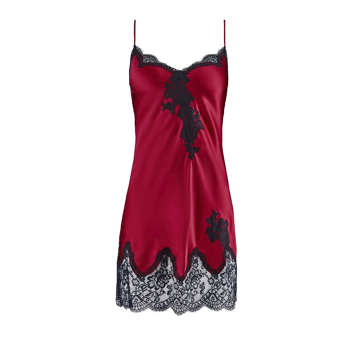 Легка комбінація вільного крою, на тонких бретелях, що регулюються, з глибоким V-подібним вирізом декольте, яке декороване (як і нижній край) мереживом, виготовлена з найніжнішого шовку.