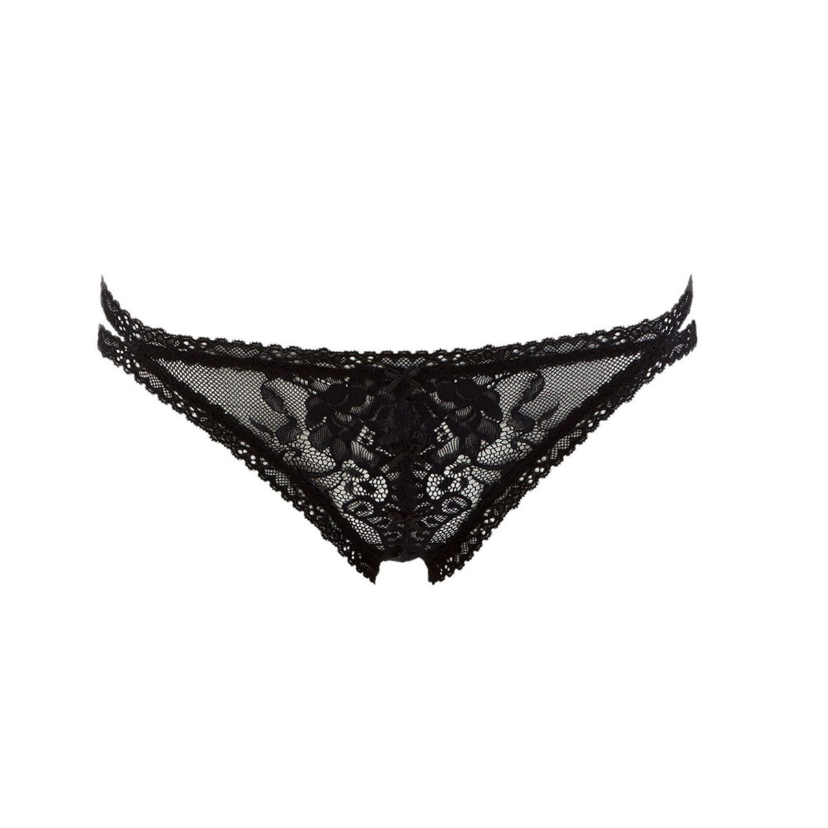 Ультра-сексуальні міні-бікіні. Труси із заниженою посадкою повністю виготовлені з мережива. Бічні панелі – з мереживної тасьми плавно перетікають на поперек. Розріз між ніг.