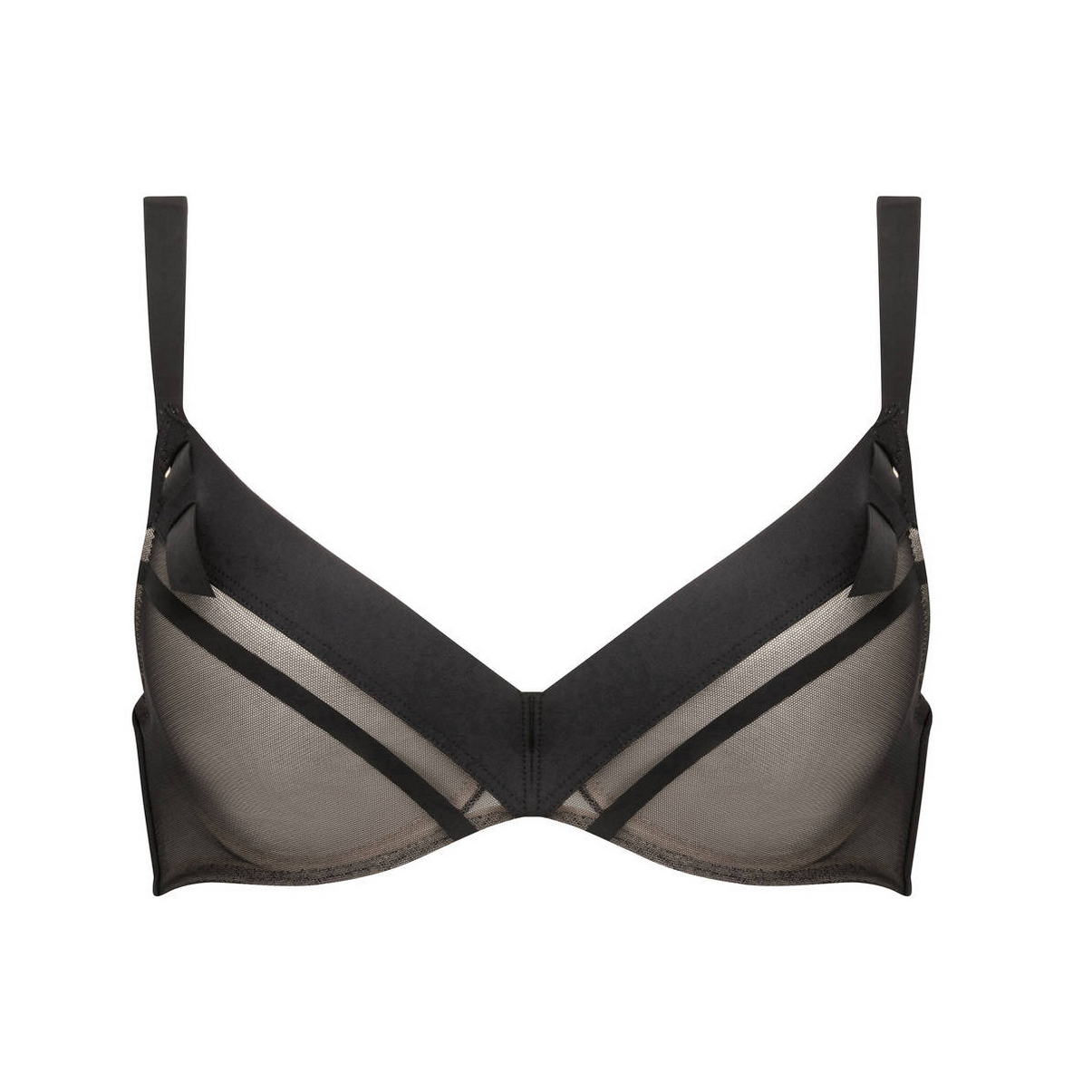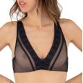 Бюстгальтер - пуш ап з інтегрованими подушками. Чашки покриті тюлем із графічними смужками. Область декольте з ефектом комірця. Задня панель – безшовна. Регульовані бретелі.