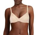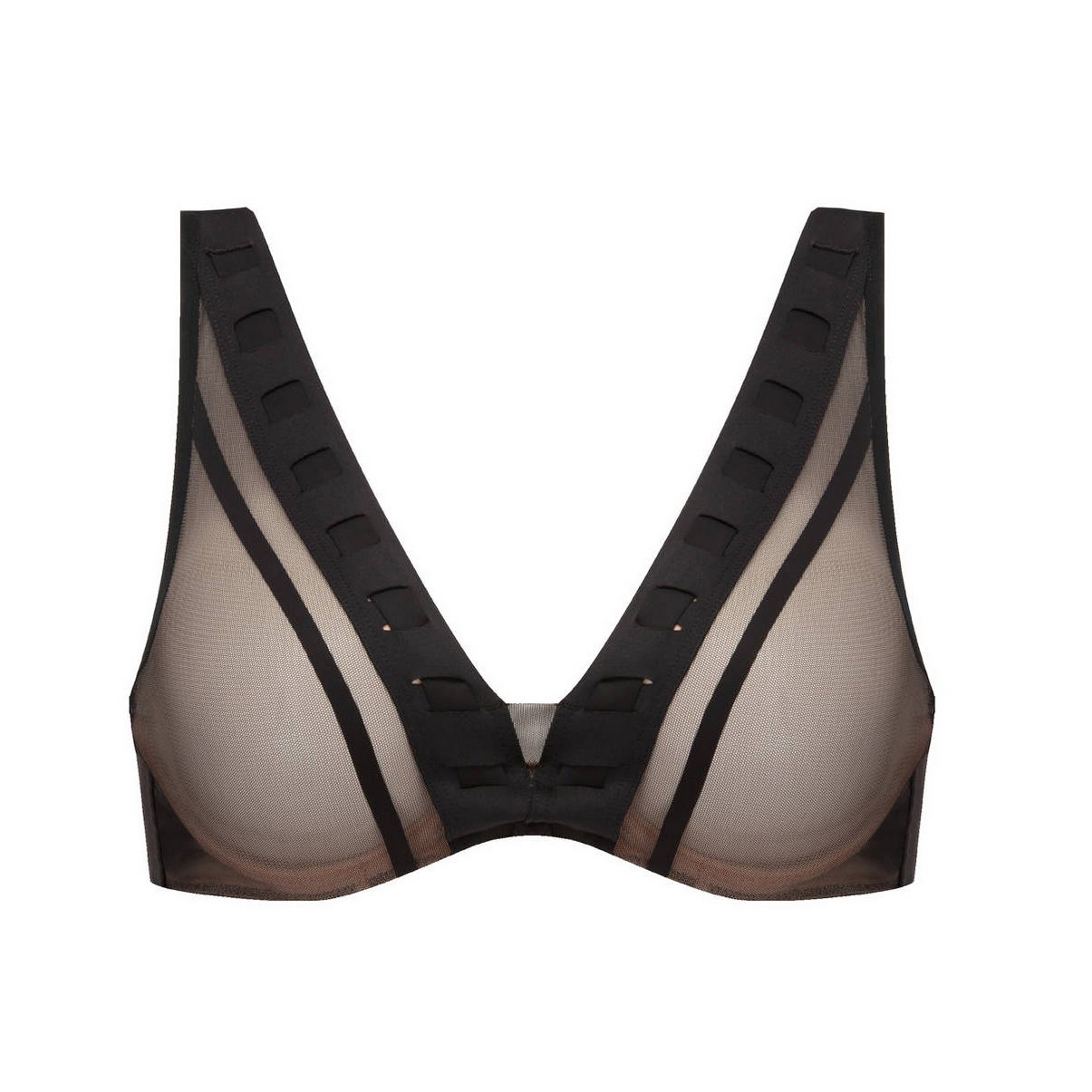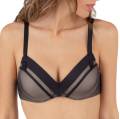 Бюстгальтер з м'якою трикутною формою чашок на кісточках. Чашки виконані з прозорого тюлю, з внутрішньої сторони дубльовані для надання необхідної підтримки. Область декольте декорована. Задня панель – безшовна. Регульовані бретелі з логотипом.