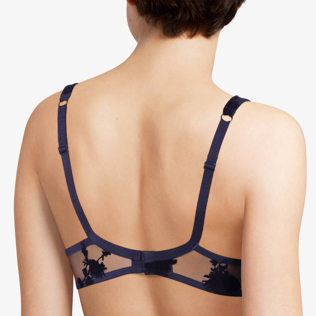 Бюстгальтер у формі балконет, на кісточках, з ущільненими бічними частинами чашок, що переходять у бретель. Додаткова кісточка на боковинах для кращої посадки. Середня частина із сітчастої тканини декорована двома щільними смужками з витонченим блиском та атласними бантиками по центру. Регульовані бретелі з логотипом Chantal Thomass.