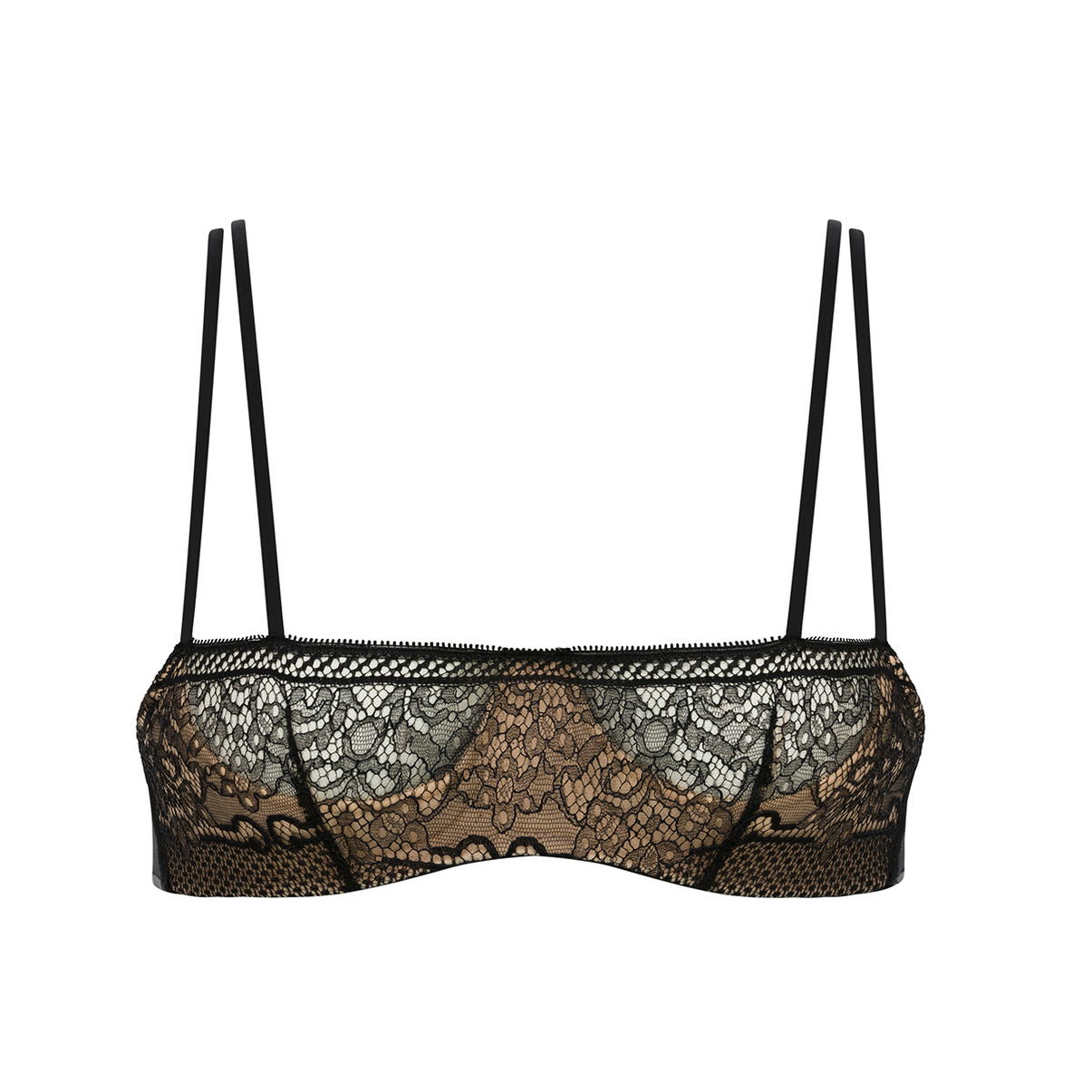 Бюстгальтер-бандо виконаний з деклікатного мережива "Leavers" з напівущільненою чашкою на "захованих" кісточках. Чашки виконані з мережива, з внутрішнього боку дубльовані тюлем для надання необхідної підтримки. На бічних панелях, які виконані з тюлю, також є кісточки. Регульовані бретелі - спагетті.