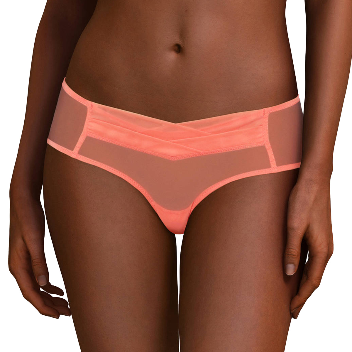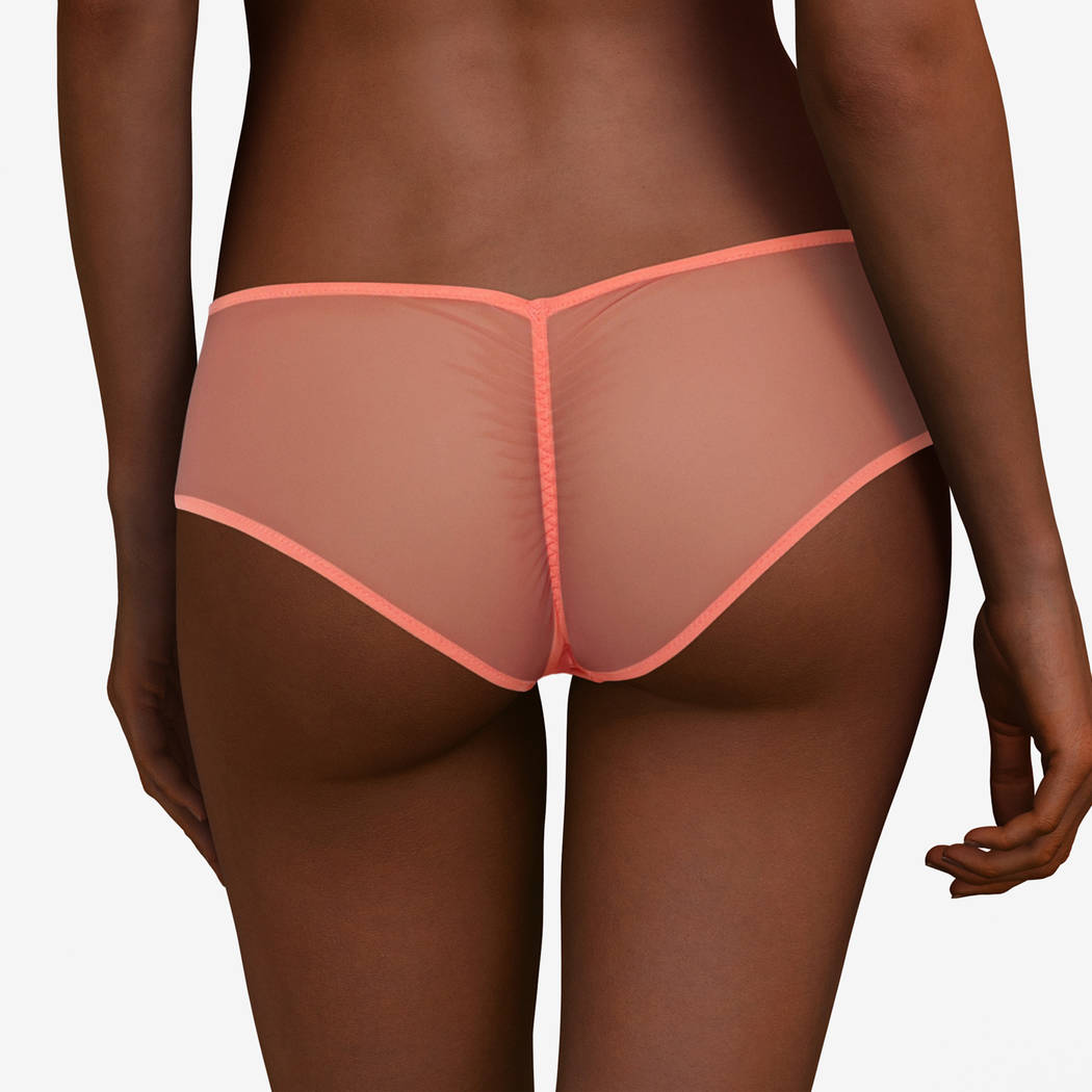 Труси-боксери із заниженою посадкою, виконані повністю із прозорого тюлю.