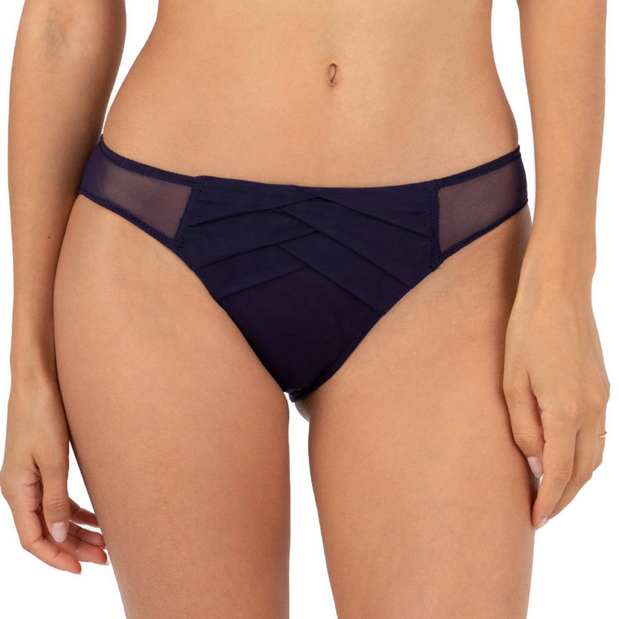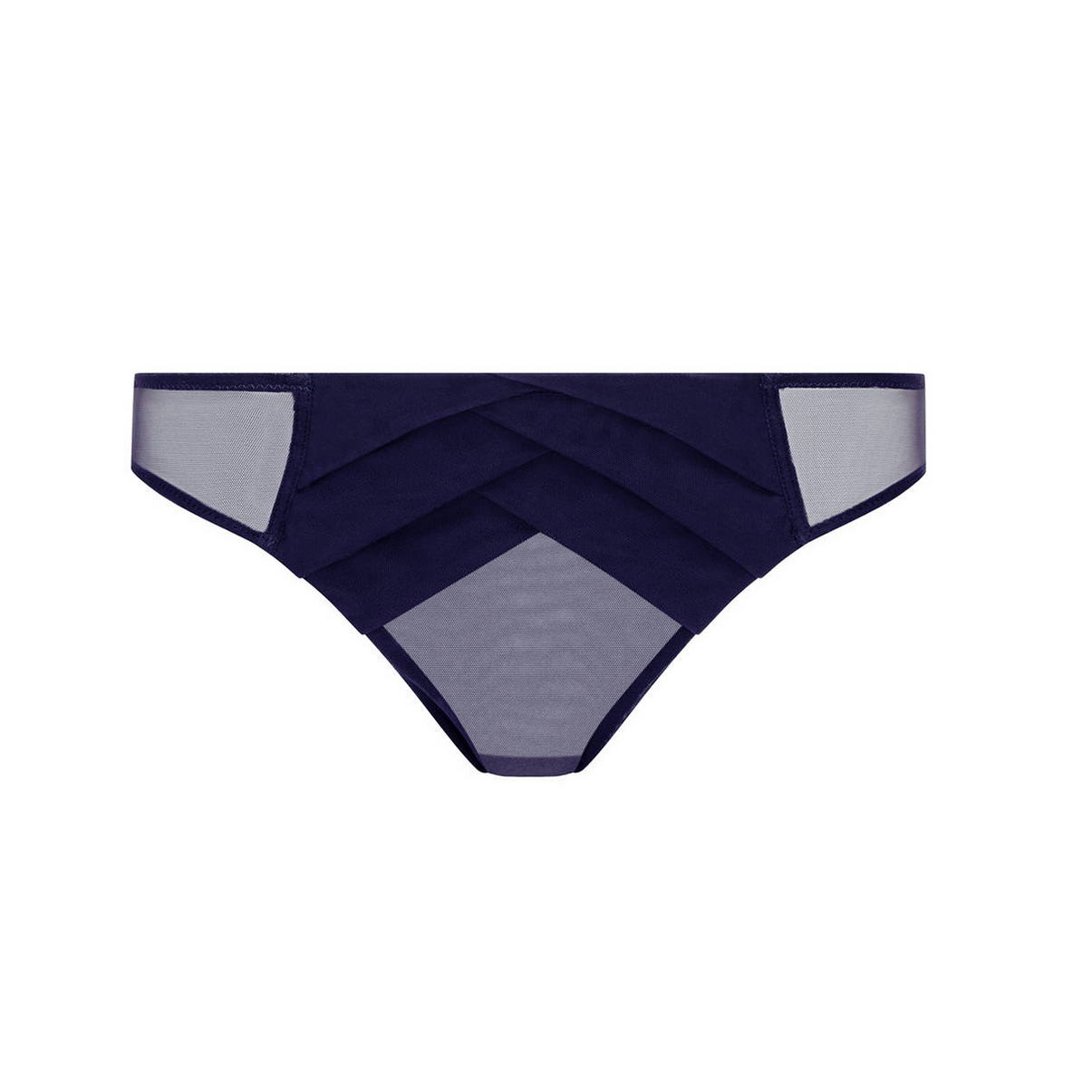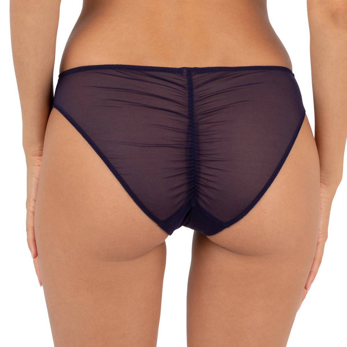 Форма закритих трусиків середньо-занижена. Крій складок імітує орігамі. Передня панель дубльована тюлем. На задній панелі використано ефект "призібраності", що робить модель привабливішою. Ластовиця бавовняна.