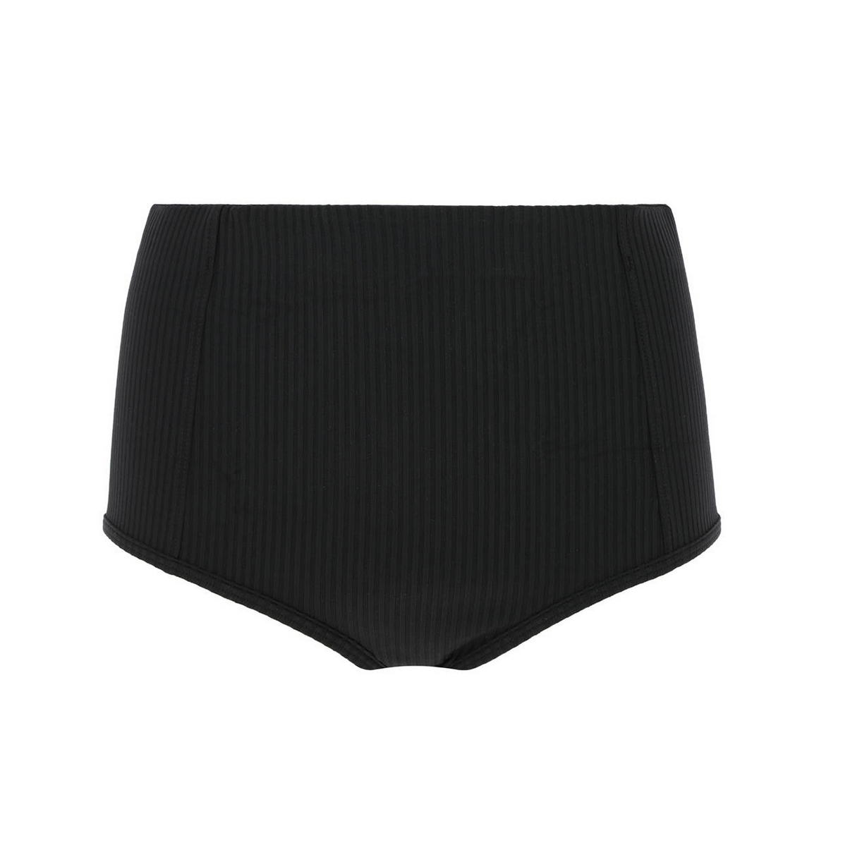 Труси з високою талією повністю виконані з матеріалу в рубчик. Схована всередині гумка у стилі спортивного поясу.