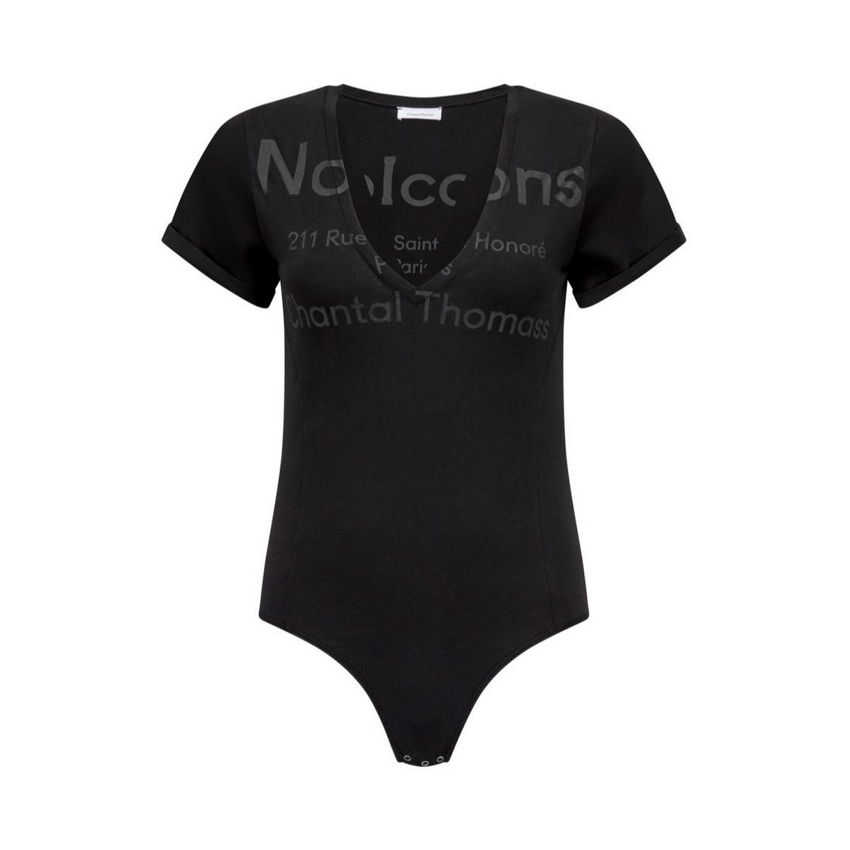 Боді з короткими рукавами з глибоким V-подібним вирізом. Виготовлене із 100% бавовни. Застібка між ніг на кнопках. Структуруючі шви, з боків, зроблять Ваш силует візуально, ще стрункішим.