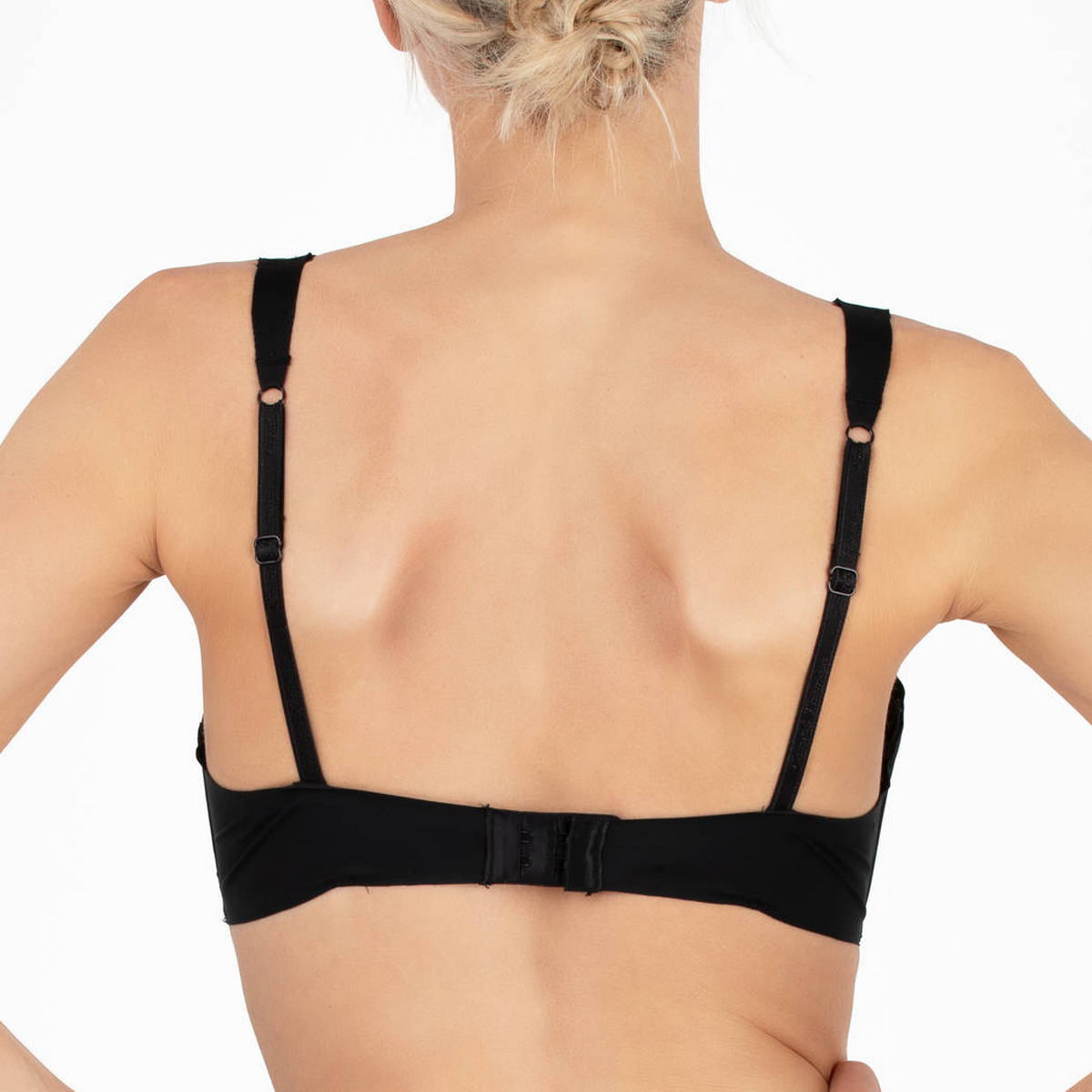 Бюстгальтер з м'якою трикутною формою чашок на кісточках. Виконаний з м'якої мікрофібри. Оригінальне оздоблення декольте "мережкою". Регульовані бретелі з логотипом.
