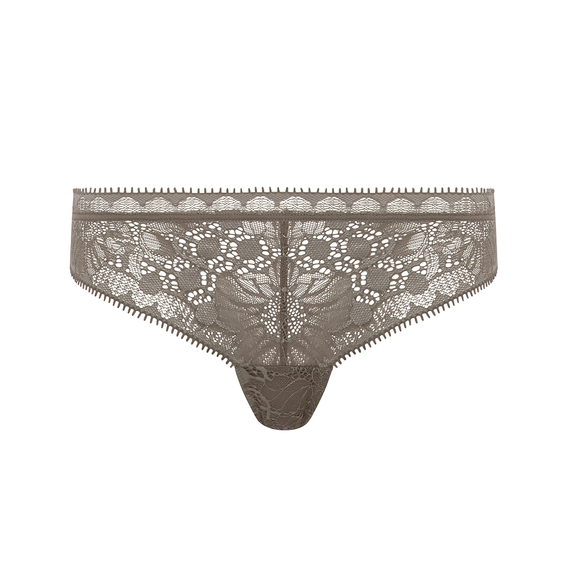 Труси - стрінги із середньо-заниженою посадкою. Повністю виконані з мережива з квітковим орнаментом.