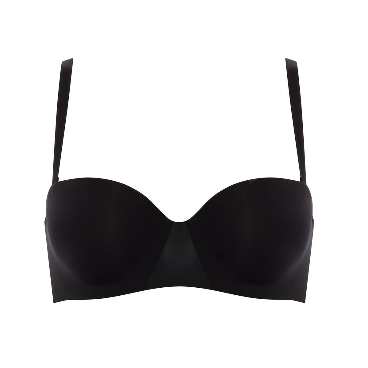 Бюстгальтер - бандо з інтегрованими подушками надання візуально додаткового обсягу, на кісточках. Гладкі та безшовні чашки виконані з м'якої та "невагомої" мікрофібри. Верхні та нижні краї бічних панелей – запаяні для досягнення максимальної невидимості під одягом. Бічні панелі з внутрішньої сторони мають силіконові доріжки. Знімні бретелі, що регулюються. Застібка з гачками має додаткову подушку для більшого комфорту.
