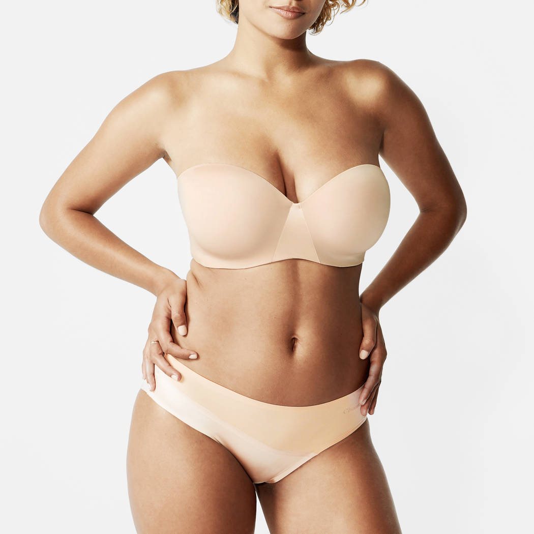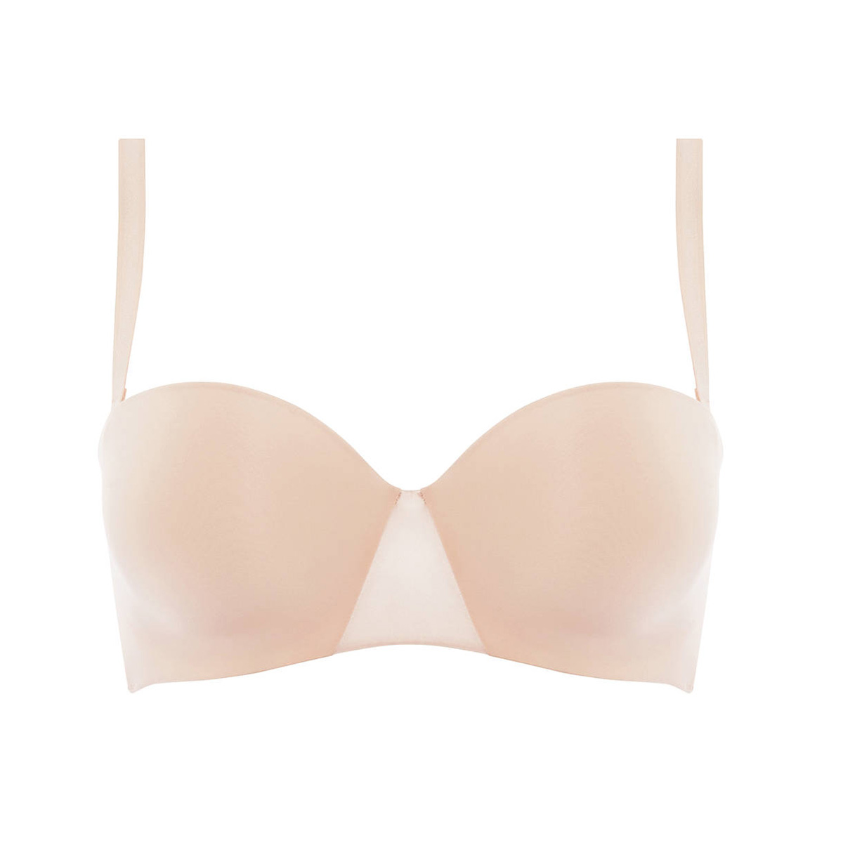 Бюстгальтер - бандо з інтегрованими подушками надання візуально додаткового обсягу, на кісточках. Гладкі та безшовні чашки виконані з м'якої та "невагомої" мікрофібри. Верхні та нижні краї бічних панелей – запаяні для досягнення максимальної невидимості під одягом. Бічні панелі з внутрішньої сторони мають силіконові доріжки. Знімні бретелі, що регулюються. Застібка з гачками має додаткову подушку для більшого комфорту.