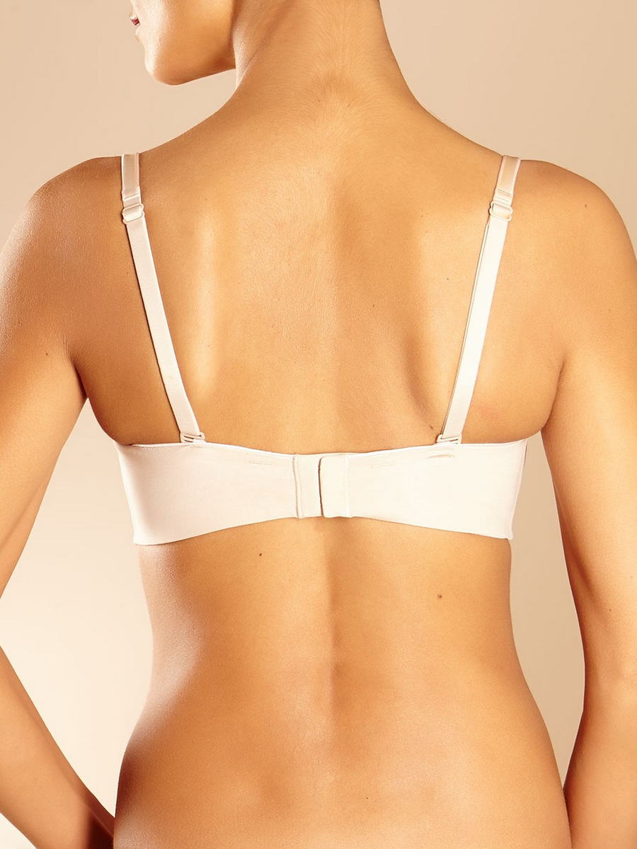 Гладкий балконет з інтегрованою подушкою для підіймаючого ефекту. Невидимий під одягом, чашки покриті абсолютно гладкою тканиною, трохи з відливом. Бретель, що відстібається, у бретельках - спеціальний наповнювач для уникнення передавлювання. Кілька варіантів перестібання бретелек. Застібка з гачками має додаткову подушку для більшого комфорту. Боковини бюстгальтера виконані таємними швами для ефекту невидимості під одягом та забезпечені силіконовою стрічкою по краю для фіксації при носінні без бретелей. По всіх краях виробу - контрастне оздоблення, на боковині додатковий шов, з одного боку з логотипом.