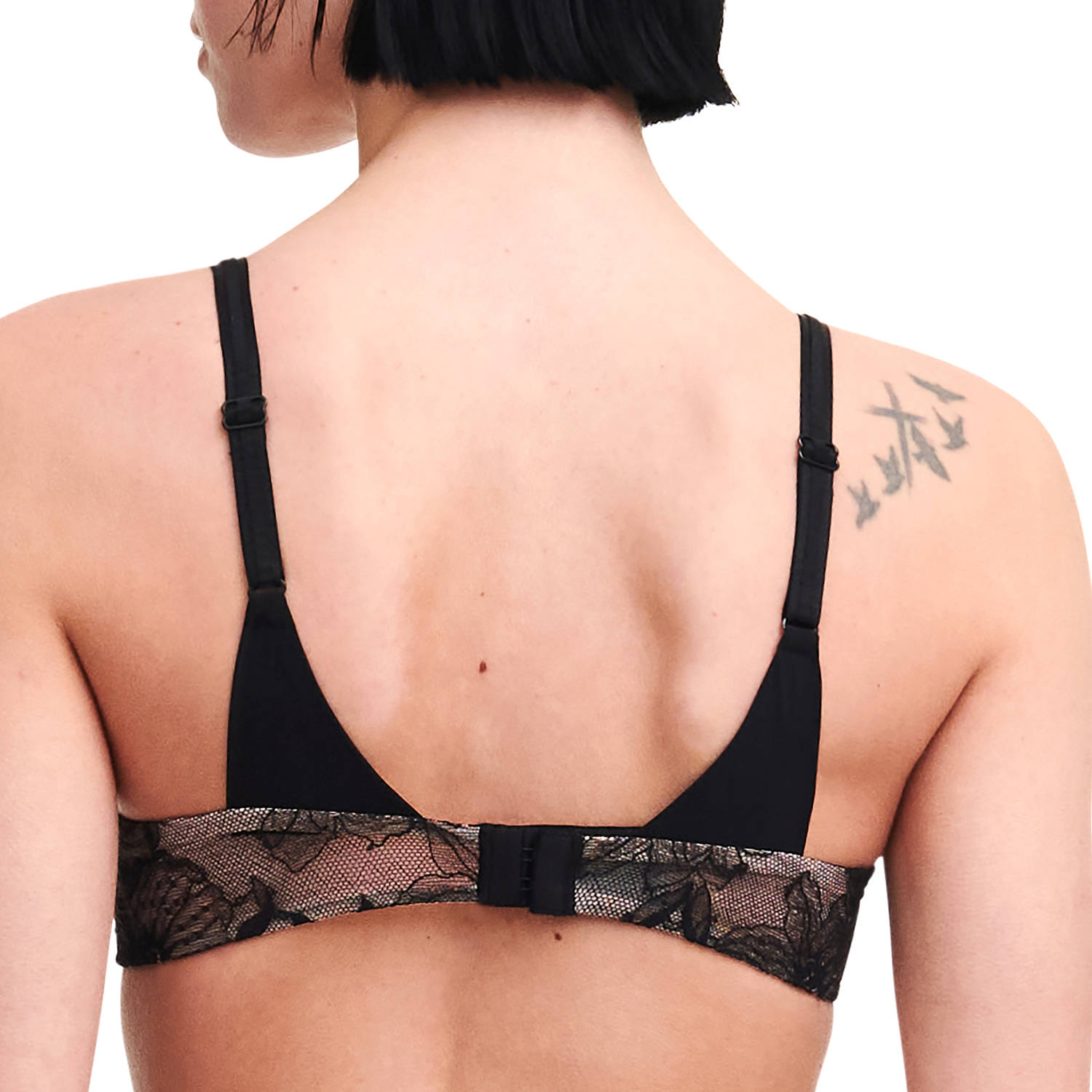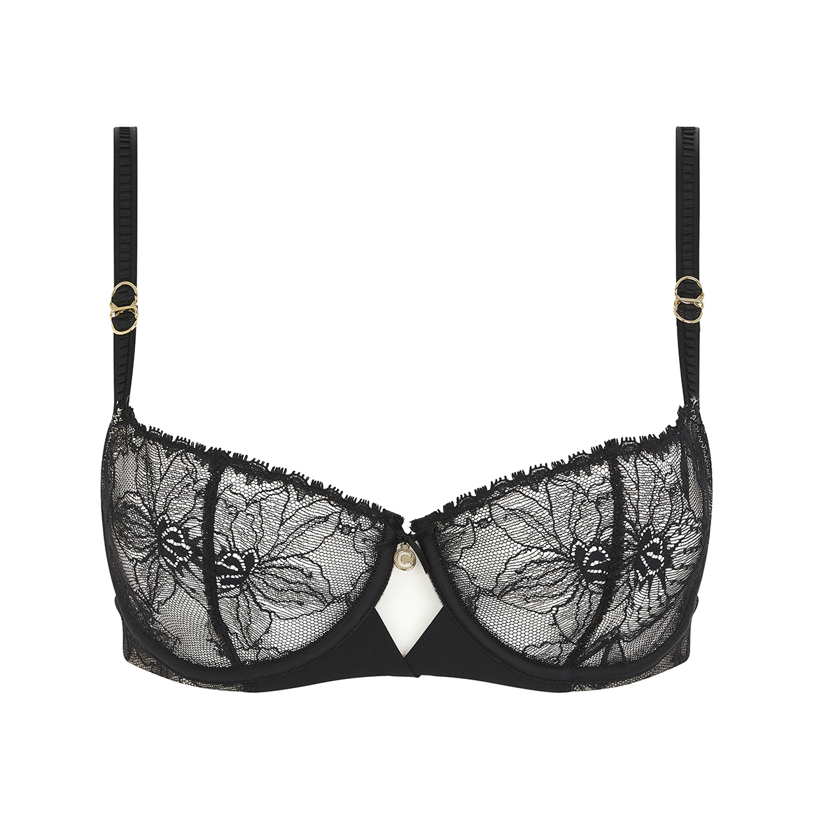 Бюстгальтер – балконет з м'якою досить відкритою формою чашок на кісточках. Чашки виконані з мережива з орнаментом з орхідей та дубльовані з внутрішньої сторони тюлем для надання додаткової підтримки. Бічні панелі – дубльовані. Регульовані бретелі доповнені декоративною деталлю.