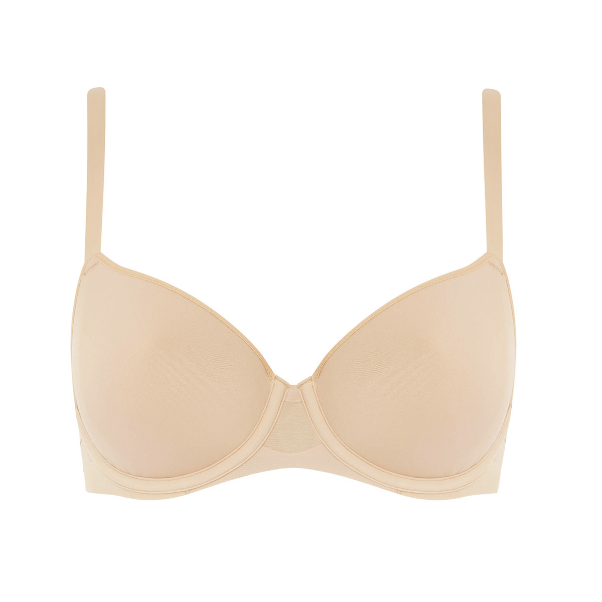 Бюстгальтер - формований із трохи ущільненою формою чашок на кісточках. Центральна та бічні панелі виконані з тюлю. Регульовані бретелі мають кілька варіантів для перестібання.