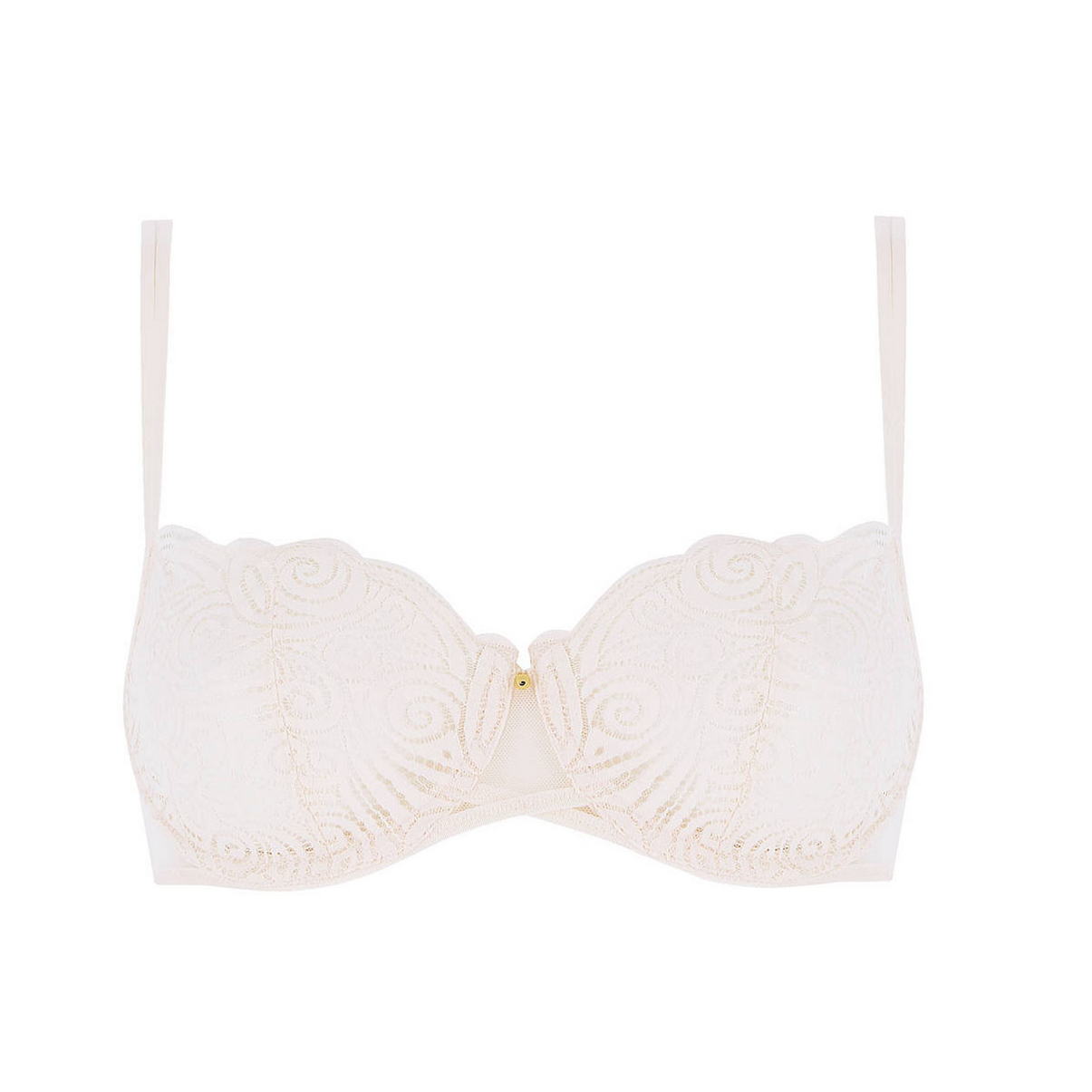 Бюстгальтер-балконет з м'якою формою чашок на кісточках. Чашки виконані з мережива з орнаментом у стилі "арабеск"; дубльовані тюлем для надання необхідної підтримки. На центральній панелі - декоративна деталь. Регульовані бретелі.