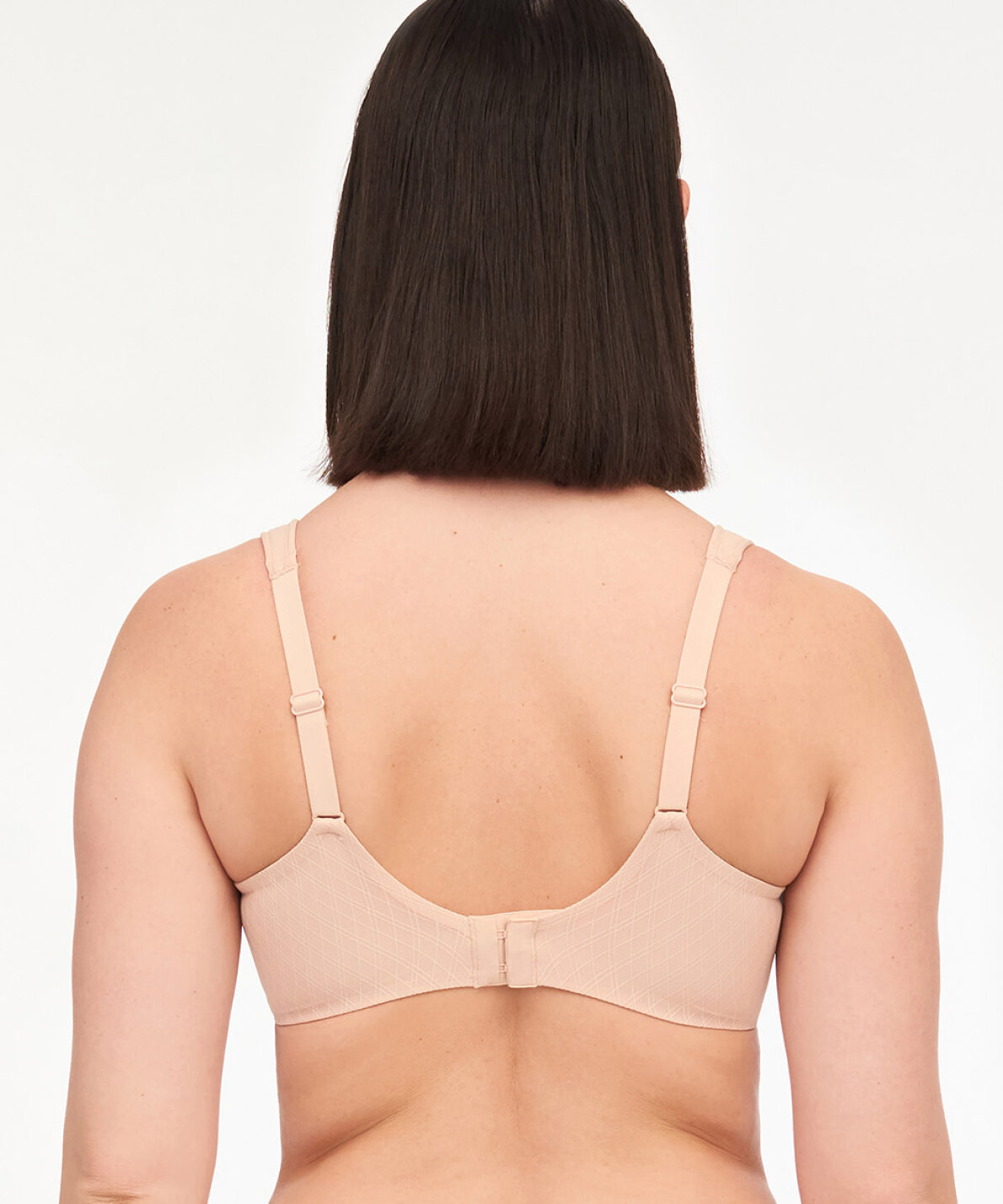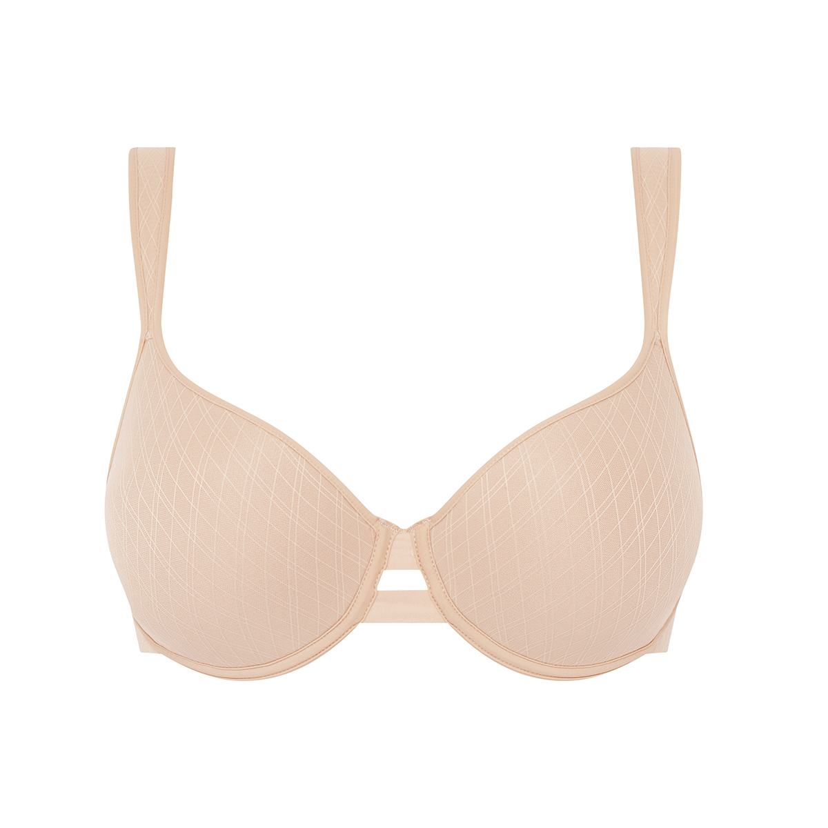 Бюстгальтер - формований із трохи ущільненою формою чашок на кісточках. Чашки виконані з мусу та покриті тонким тюлем з графічним орнаментом. Бічні панелі із "прихованним" оздобленням. Балетна спинка для збалансованого розподілу навантаження. Широкі бретели, що регулюються, з прошарком з мусу для уникнення тиску на плечі.