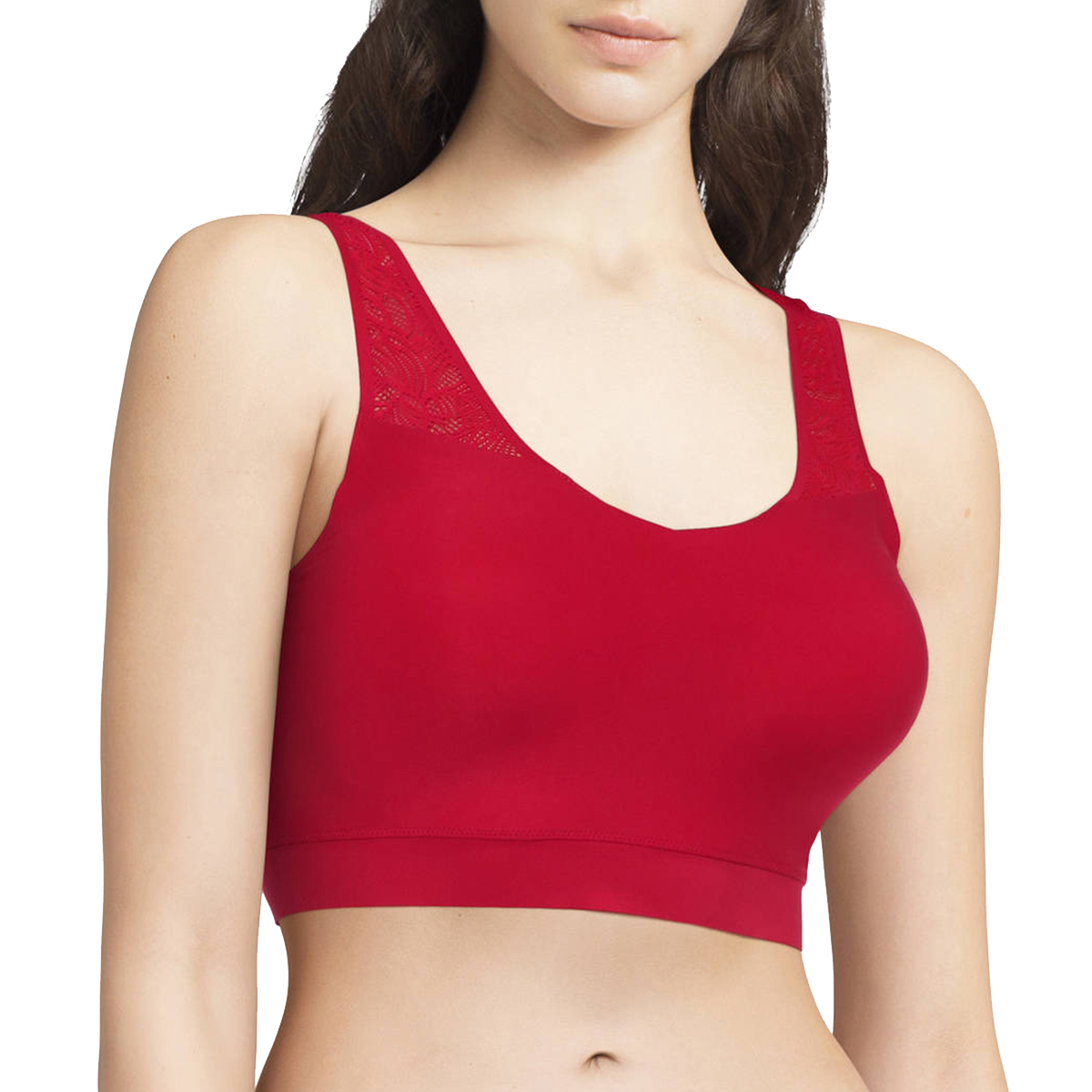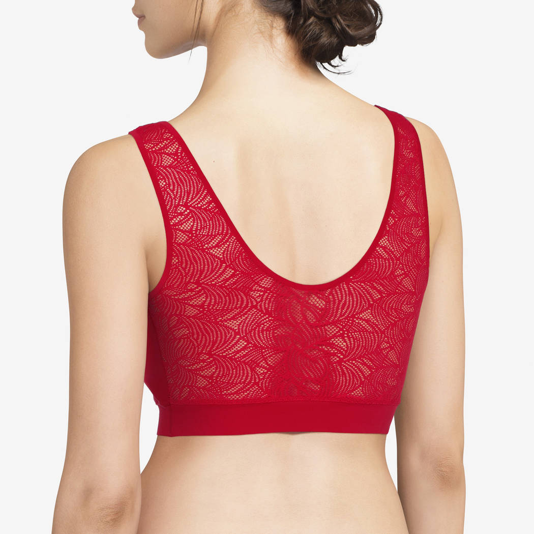 Безшовний бюстгальтер-топ. Без кісточок. Виконаний з м'якого та еластичного матеріалу, який має ефект "другої шкіри". Бюстгальтер оснащений інтегрованими подушками. Комфорт і підтримка Вам гарантовані, незважаючи на відсутність кісточок. Ця модель бюстгальтера розроблена спеціально для того, щоб слідувати за рухами Вашого тіла, але залишаючись на місці протягом дня. Задня панель із мережива.
