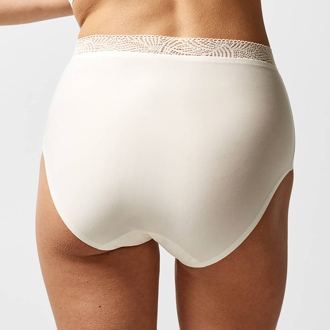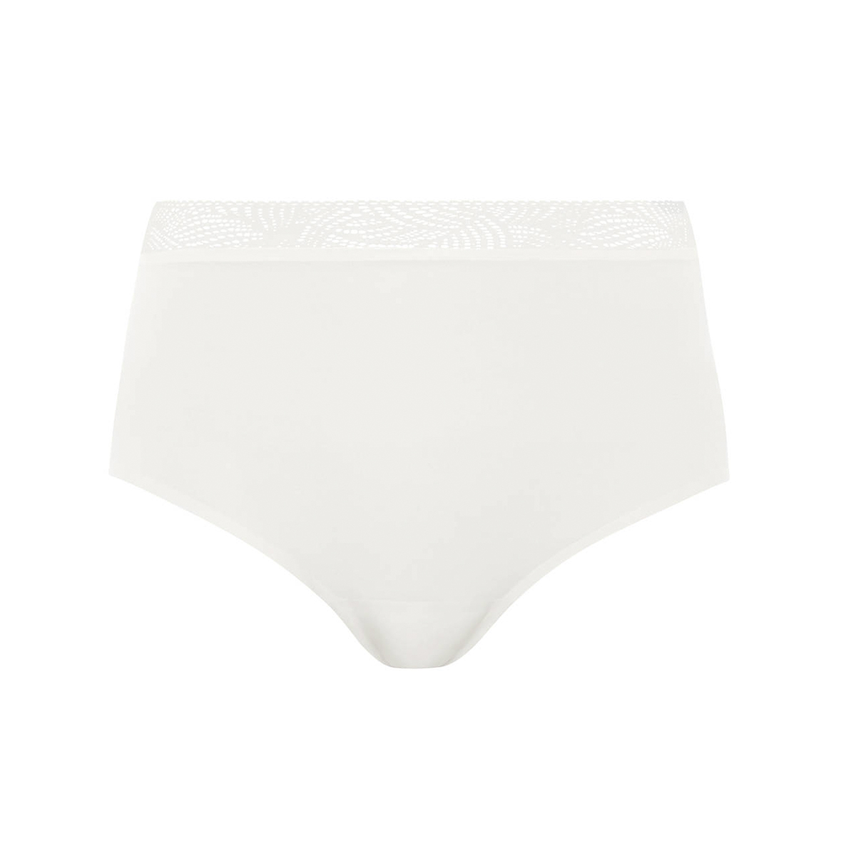 Труси - з високою талією. Для надання жіночності пояс доповнений ультра плоским мереживом. Виконані з "найніжнішої" еластичної мікрофібри з ефектом "другої шкіри". Труси не обмежують свободу Ваших рухів і при цьому залишаються на місці. Безшовні, із "запаяними" краями.