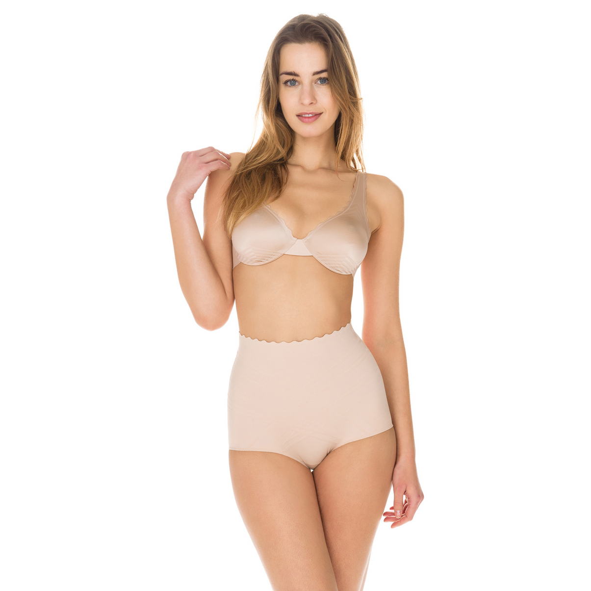 Гладка, невидима під одягом, лінія білизни з м'якої мікрофібри з бюстгальтером, і трусиками, що моделюють.