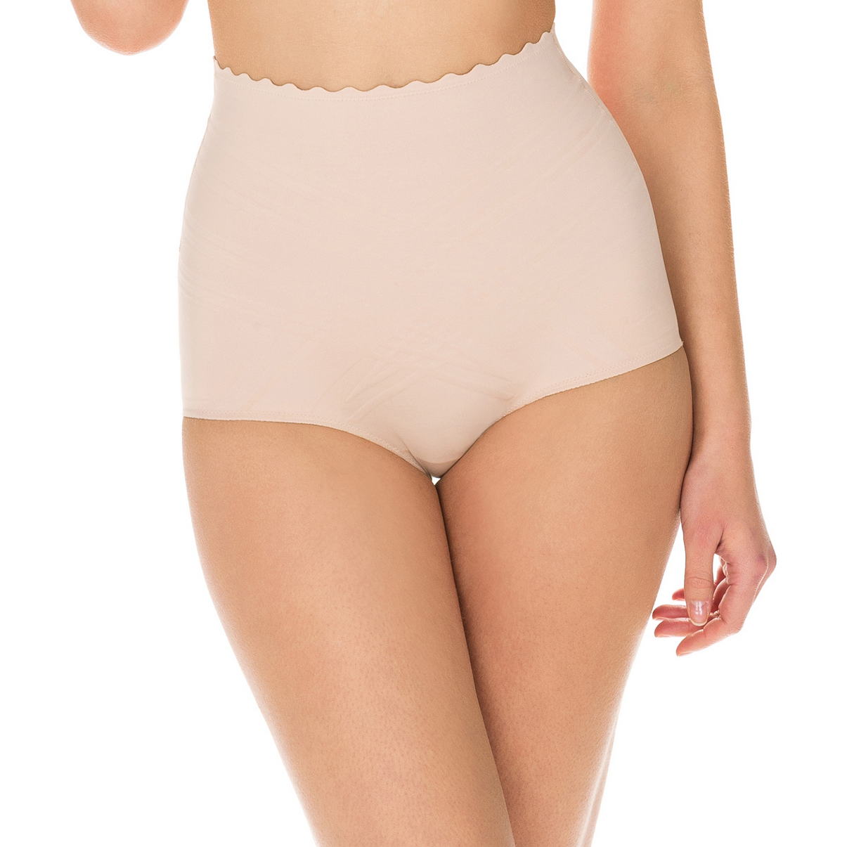 Високі коригувальні труси з мікрофібри. Корекція трьох зон: талії, стегон та живота. Ефект досягається завдяки силіконовим доріжкам на передній панелі та ущільненому поясу. Щоб силікон не торкався шкіри, передня панель дубльована. Бавовняна ластовиця.