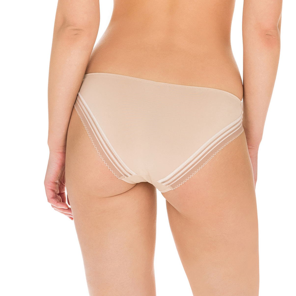 Трусики бікіні із середньою лінією талії. Гладка мікрофібра щільно прилягає до тіла та непомітна під одягом. На задній панелі тасьма з еластичного мережива із плоскими швами.
