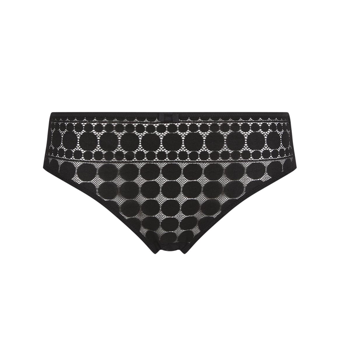 Труси - класичні з середньо-заниженою посадкою. Повністю виконані з мережива в горошок.