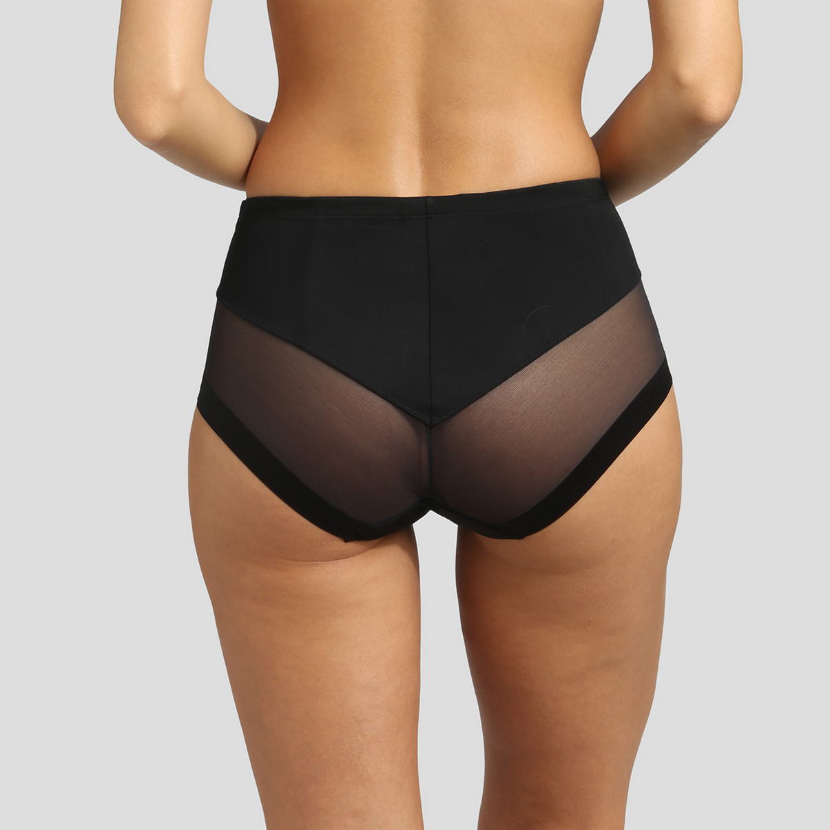 Труси із завищеною талією, які чудово адаптуються під Вашу фігуру. Передня та задня панелі виконані з м'якої мікрофібри. Для надання жіночності труси декоровані вставками з тюлю.