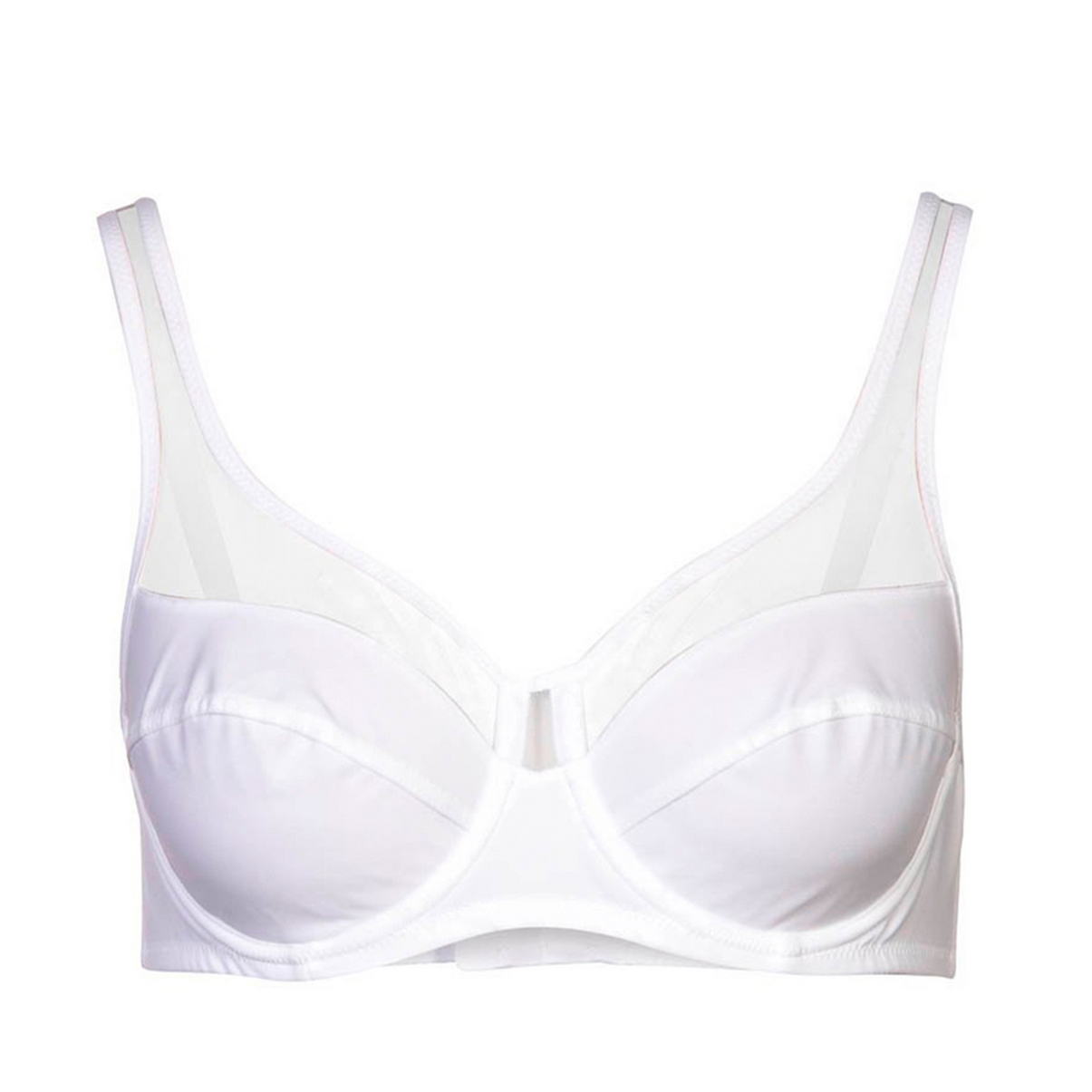 Бюстгальтер класичний з м’якою формою чашок на кісточках, з суцільнокрійними широкими бретелями та дубльованими з внутрішньої сторони чашками забезпечить бездоганну підтримку. Бічні панелі посилені м'якими кісточками. Овальна спинка зменшує навантаження на хребет. Горизонтальний шов на чашці трохи округлює форму грудей. Вставки з тюлю додають жіночності.