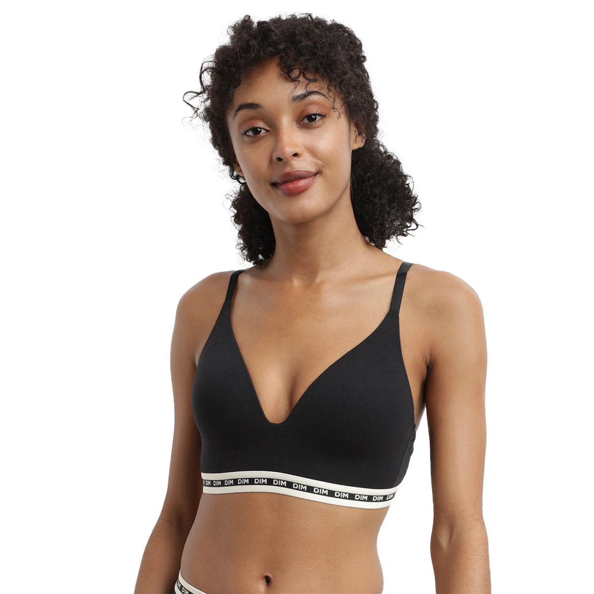 Бюстгальтер - трикутник із ущільненою формою чашок. Без кісточок. Основа бюстгальтера - широка контрастна еластична резинка у спортивному стилі з логотипом, що надає додаткової підтримки. Бюстгальтер виконаний з приємного матеріалу: поєднання бавовни та модалю - комфорт на весь день! Регульовані бретелі. Застібка на спині.