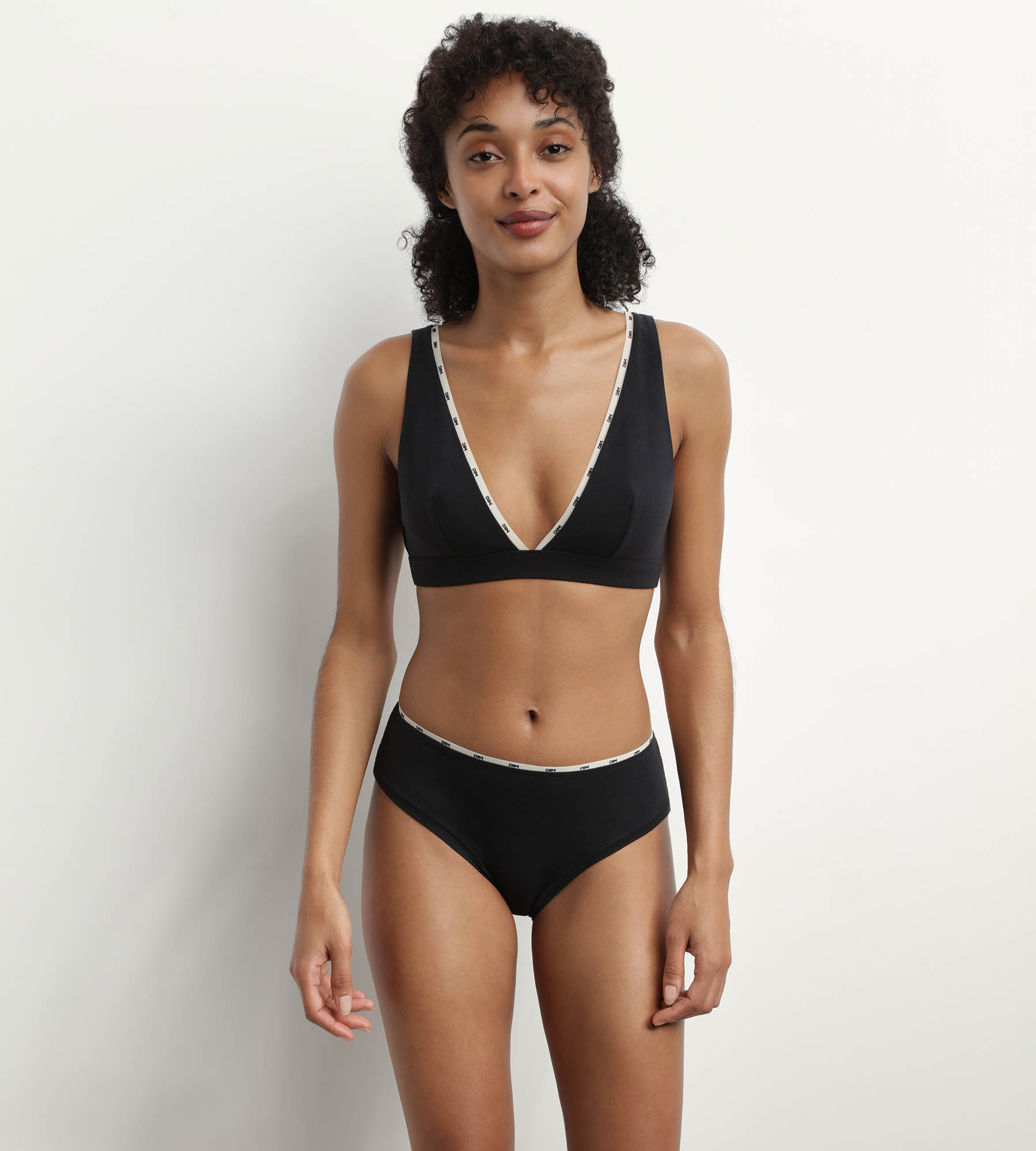 Труси – класичні із середньою посадкою. Повністю виконані з непрозорого приємного матеріалу: поєднання бавовни та модалю - комфорт на весь день! Контрастний пояс з логотипом.