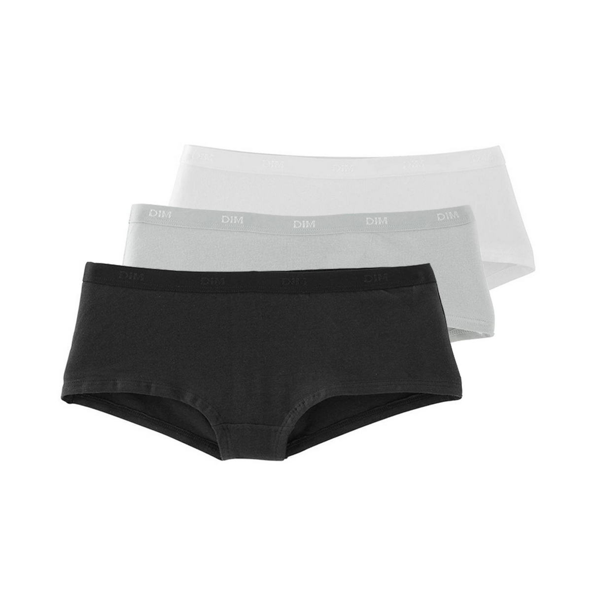Набір із трьох трусиків-боксерів різних кольорів. Ніжна бавовна та м'який комфортний пояс з логотипом "Dim". Плоска обробка. Комфорт протягом дня.