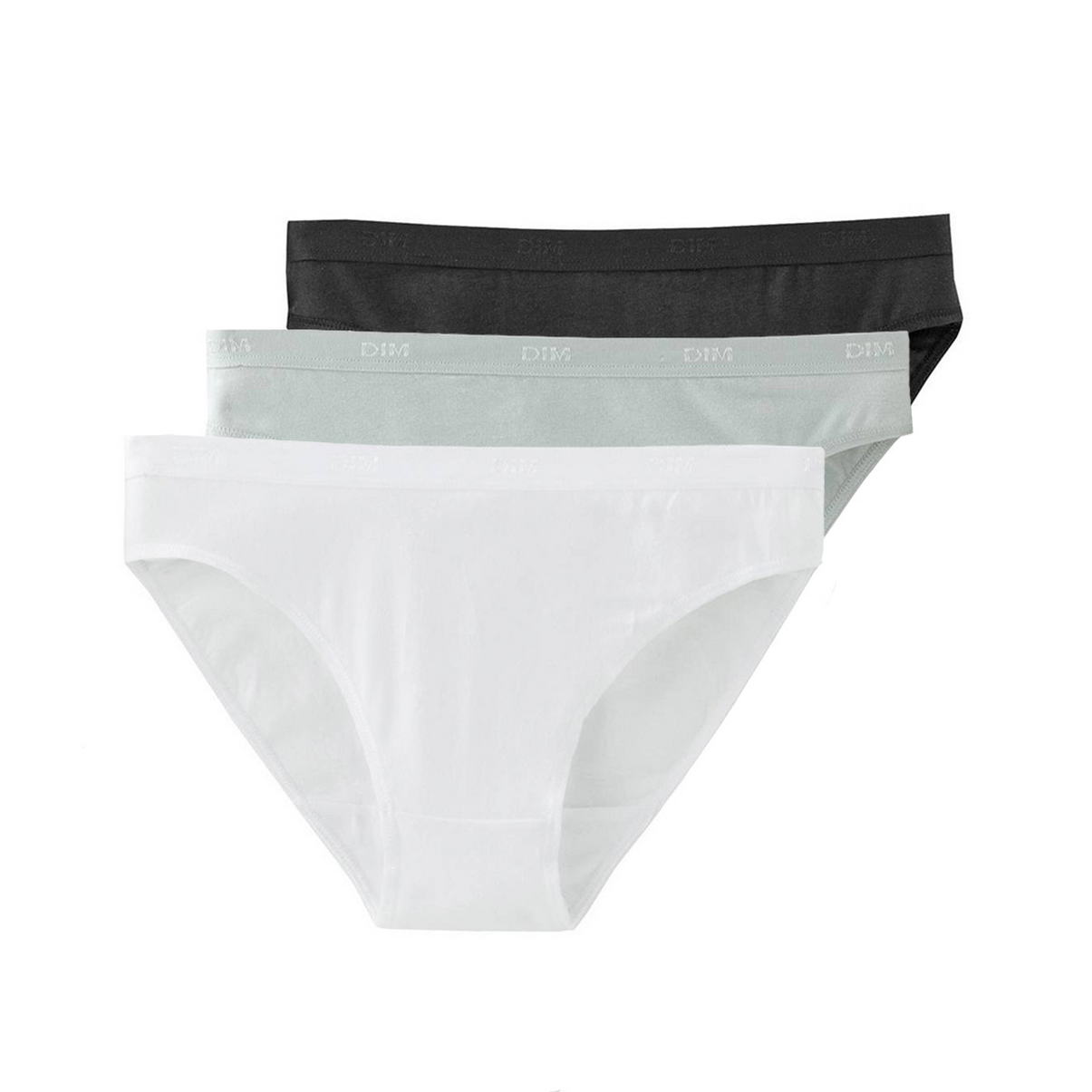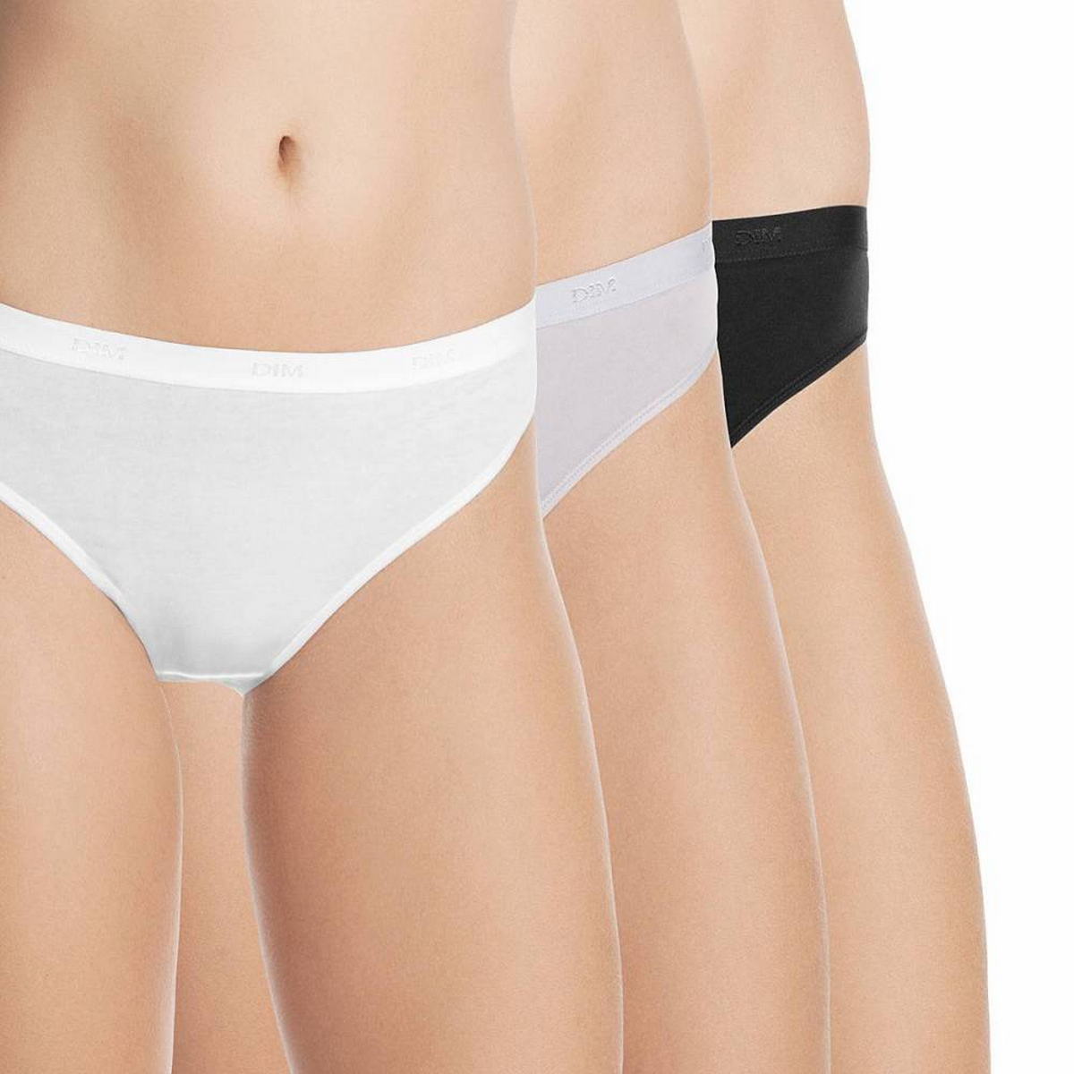 Набір із трьох класичних трусиків різних кольорів. Ніжна бавовна та м'який комфортний пояс з логотипом "Dim". Плоска та еластична обробка. Комфорт протягом дня.