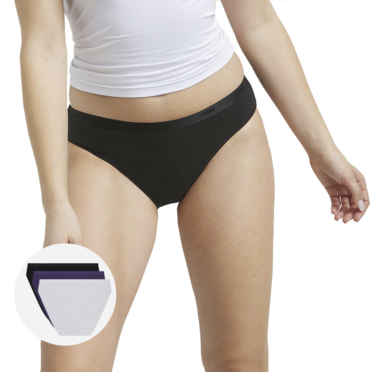 Набір із трьох класичних трусиків різних кольорів. Ніжна бавовна та м'який комфортний пояс з логотипом "Dim". Плоска та еластична обробка. Комфорт протягом дня.