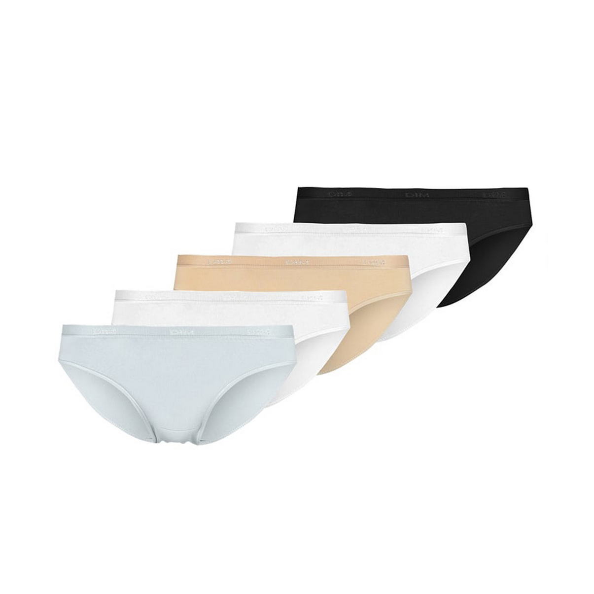 Набір із п'яти класичних трусиків різних кольорів. Ніжна бавовна та м'який комфортний пояс з логотипом "Dim". Плоска та еластична обробка. Комфорт протягом дня.