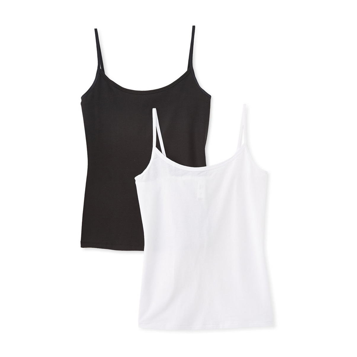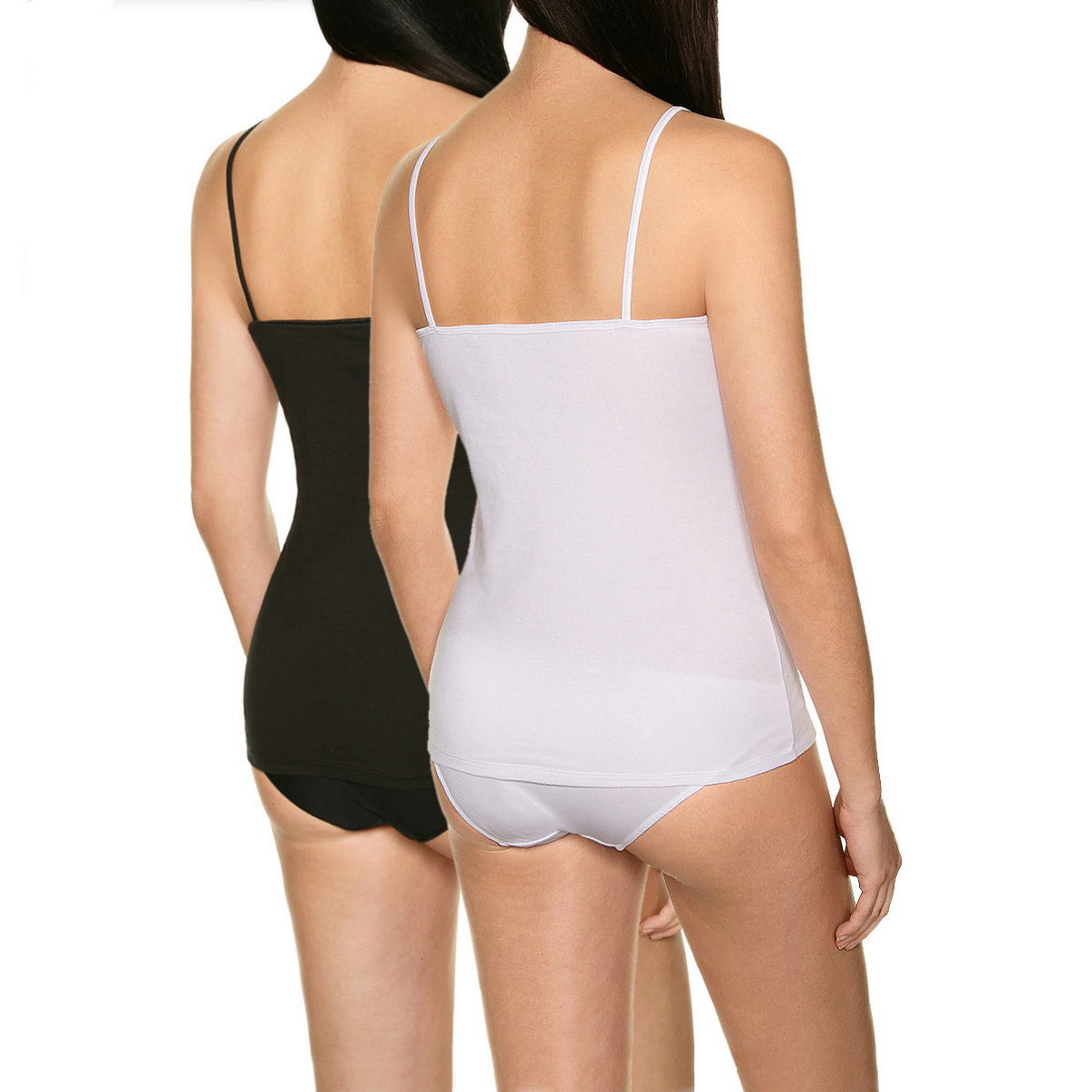 Майки з еластичної бавовни на тонких бретельках. М'яка тканина та делікатне оздоблення. Дві штуки в упаковці.